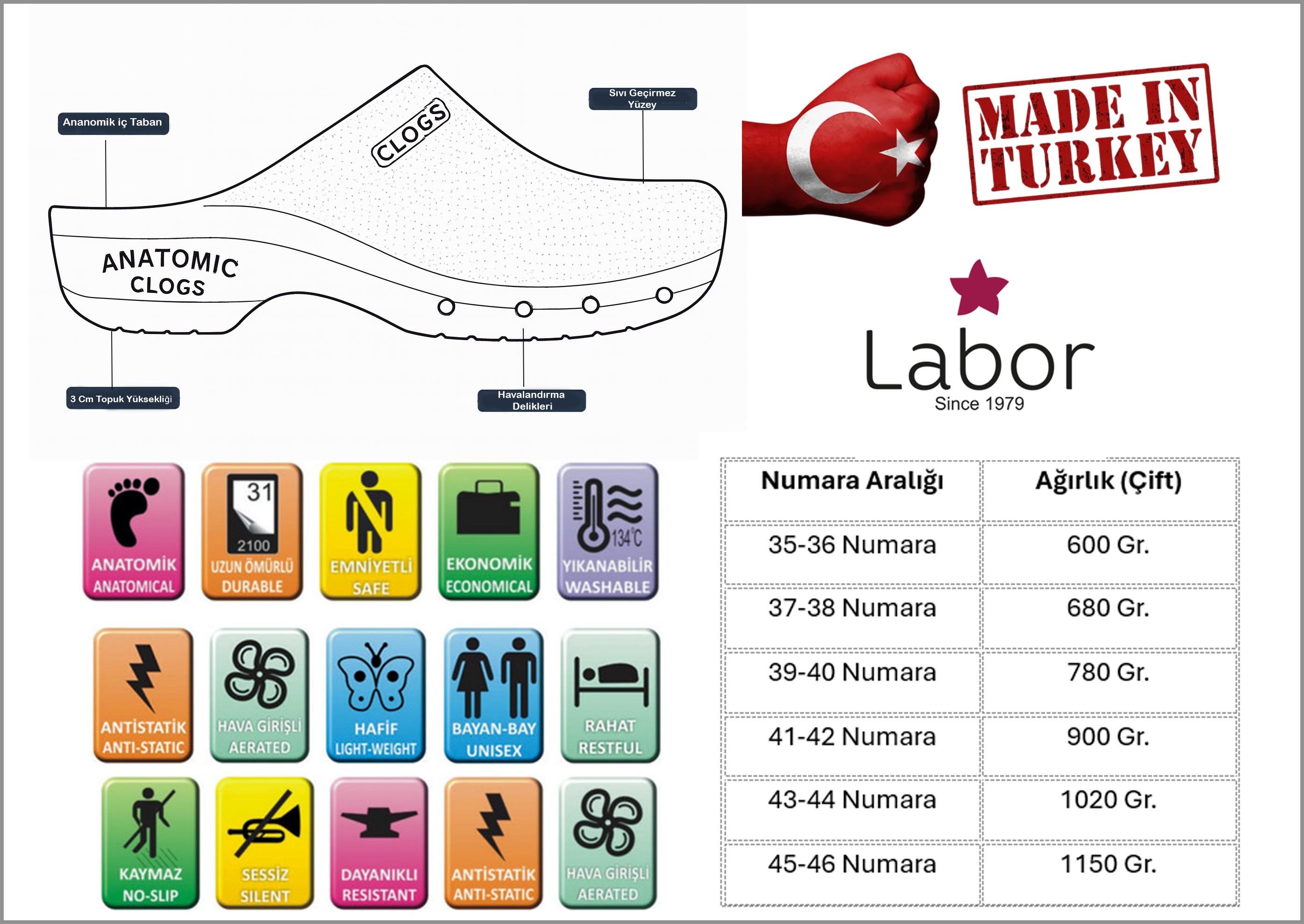 - Kaymaz (Anti-Slip) Taban: Islak ve kaygan zeminlerde (ameliyathane, laboratuvar) güvenliğinizi artıran özel desenli, yüksek tutuşlu taban teknolojisi.