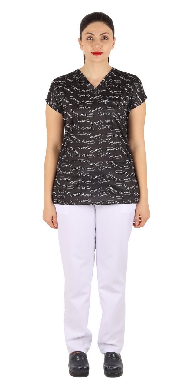 Atatürk İmzalı Desenli Bayan Cerrahi Forma Üst