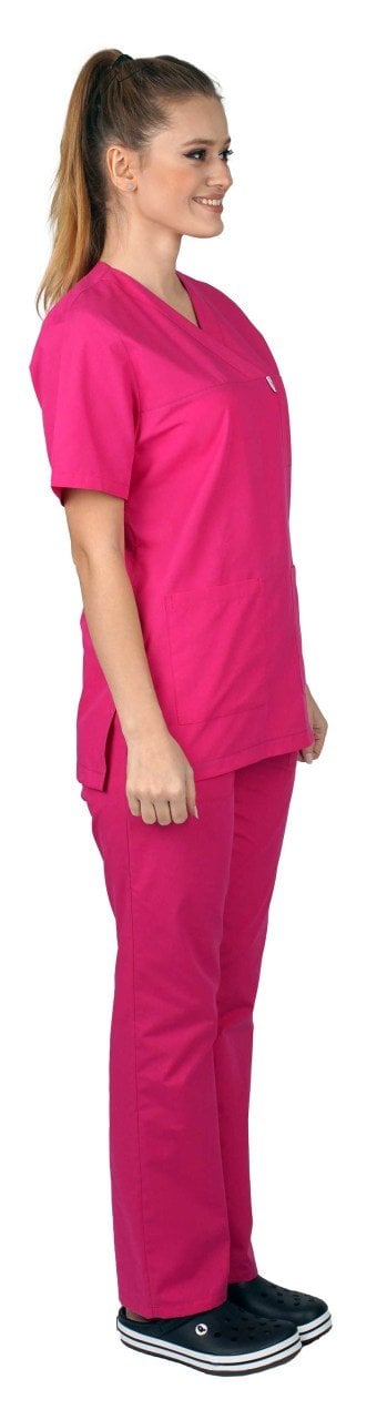 Kadın sağlık çalışanlarımız için hazırlanmış olan V yakalı iki parça ameliyathane formaları hazırlanırken rahat ve kullanışlı olmalarına özen gösterilmiştir. Kadın doktor ve hemşireler formaları güvenle kullanabilir. Fuşya rengin göz alıcı güzelliği de memnuniyet sağlayacaktır.