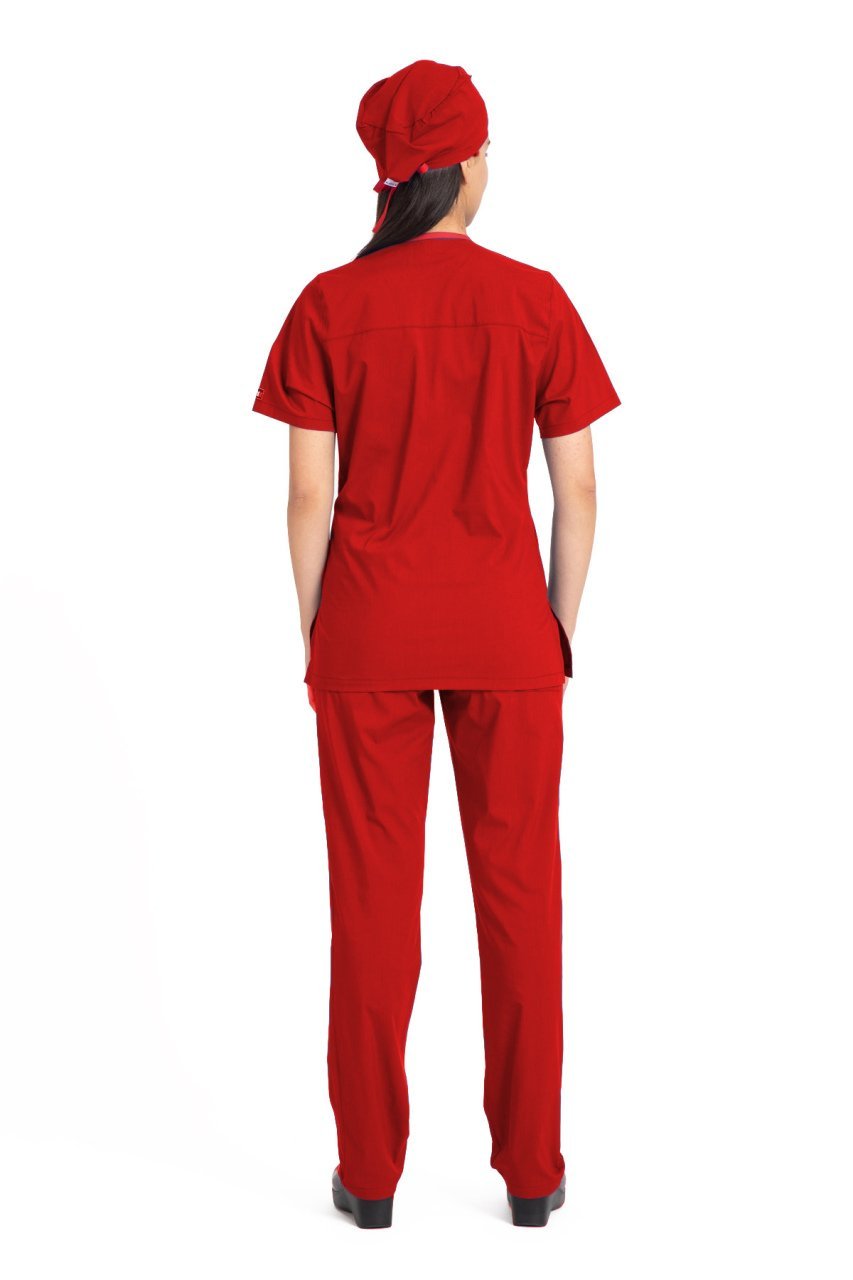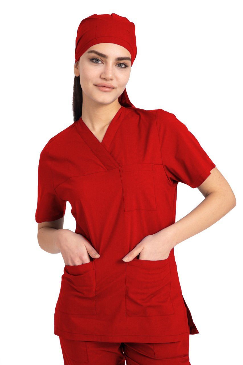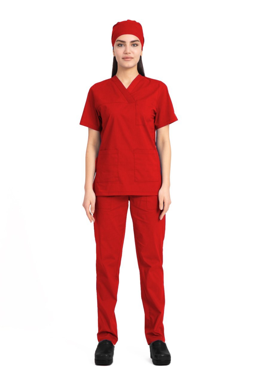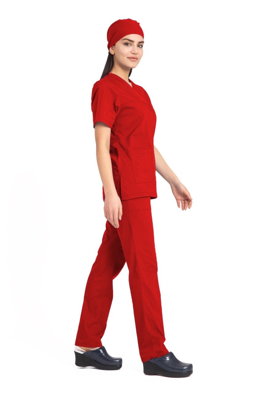 Kırmızı renkli terikoton kumaştan yapılmış cerrahi kadın formaları sağlık çalışanlarının aradığı tüm özellikleri sunuyor. Sağlık, rahatlık, hareket kabiliyeti vermesi gibi özelliklerinin yanı sıra şık görüntüsü de müşterilerimizin olumlu geri bildirimlerde bulunmasını sağlıyor.