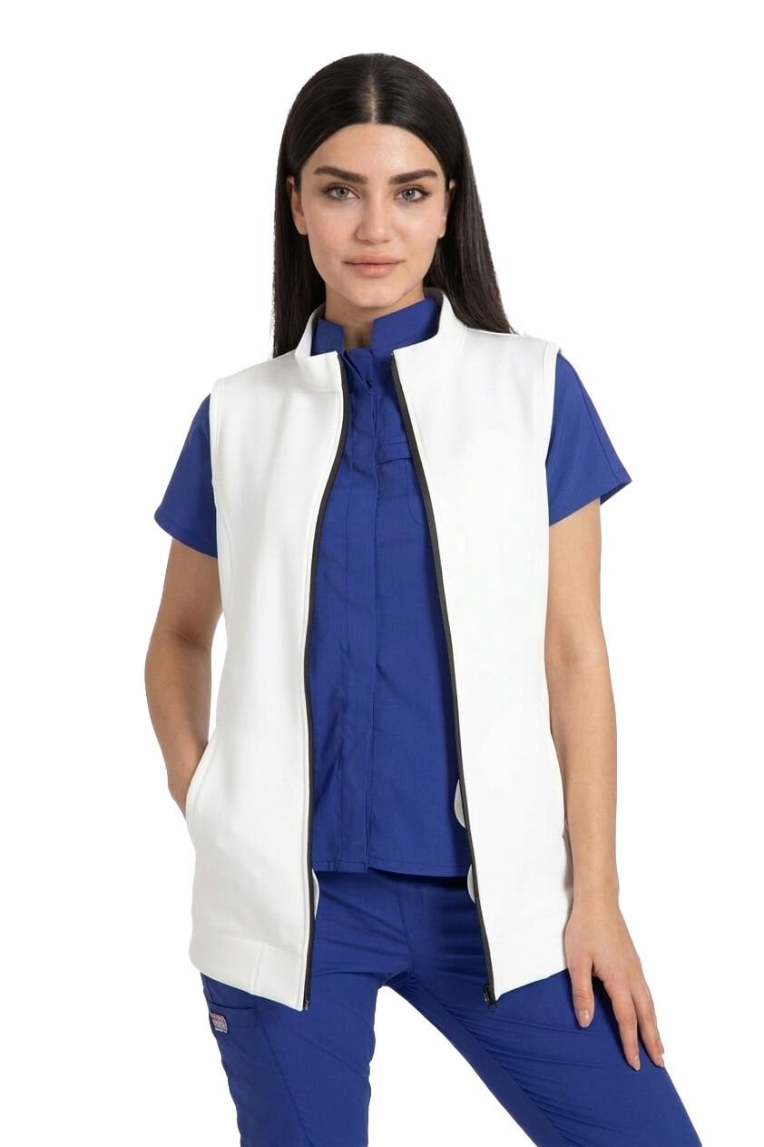Sağlık profesyonellerinin yoğun iş temposuna uyum sağlamak için özel olarak tasarlanan Beyaz Dalgıç Kumaş Yelek, hem şıklığı hem de fonksiyonelliği bir araya getiriyor. Cerrahi formalarınızın üzerine tam uyum sağlayan bu yelek, nöbetlerinizde ve günlük çalışma saatinizde vazgeçilmeziniz olacak.