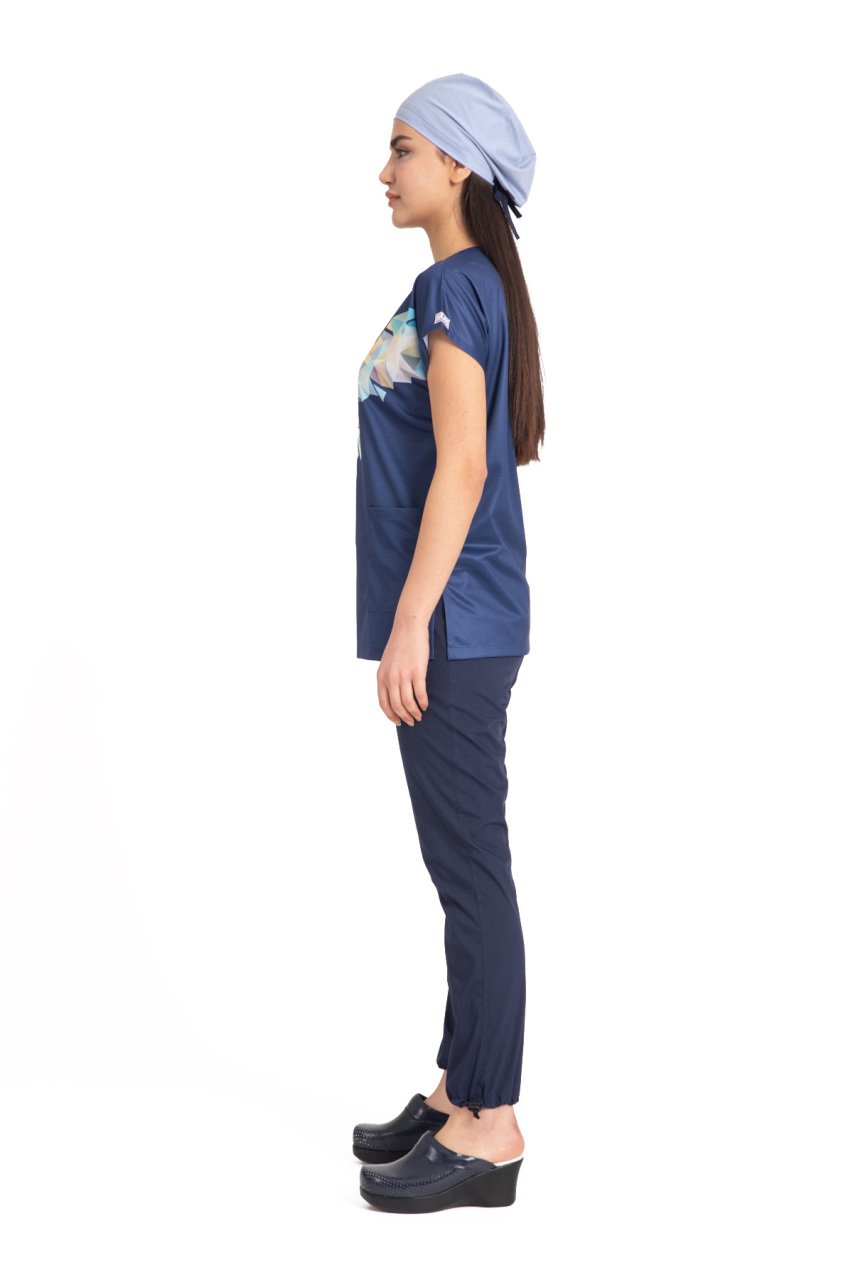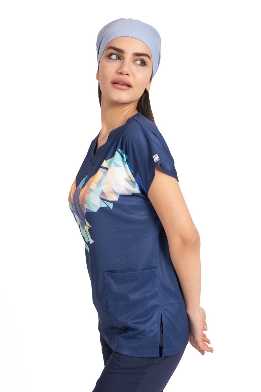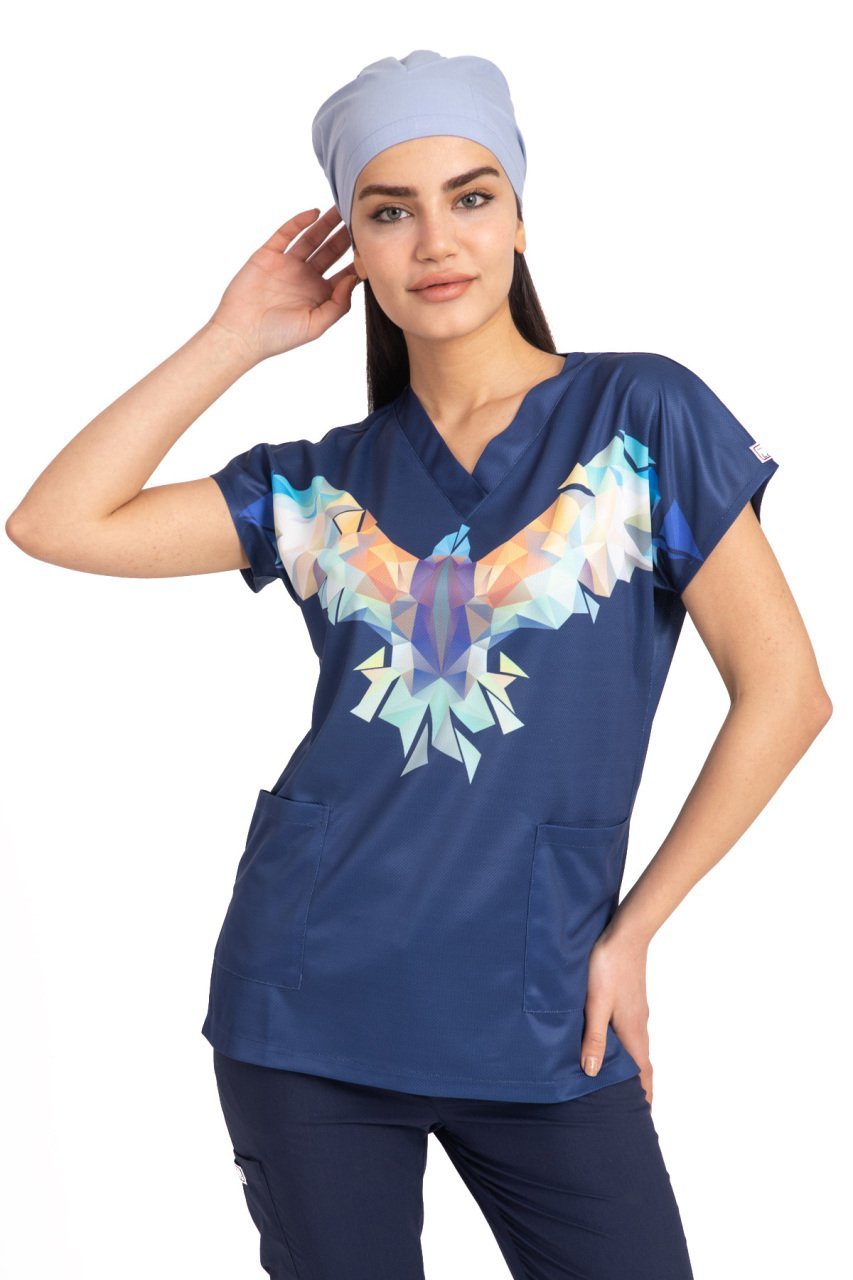 Bu modelimiz tek üst olarak kişiye özel olarak hazırlanmaktadır. Dry touch (ince kumaşa) kendinden basılıdır. Kesinlikle renk atmaz. Ütüde sizi üzmez. Kırmızı kalp desenleri lacivert çizgilerle süslenmiştir. Özel hastaneler, klinikler ve güzellik merkezleri için özel tasarımdır.