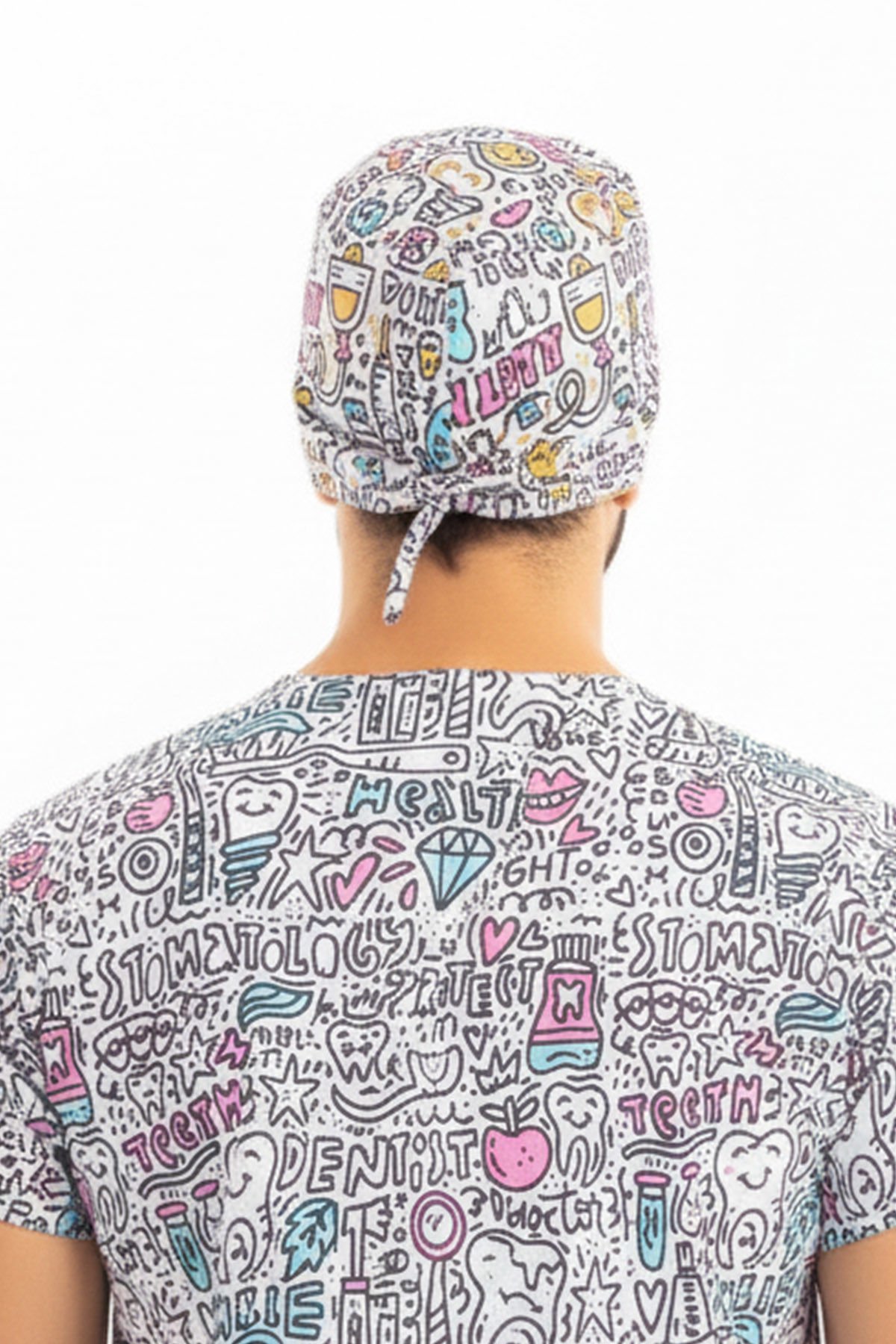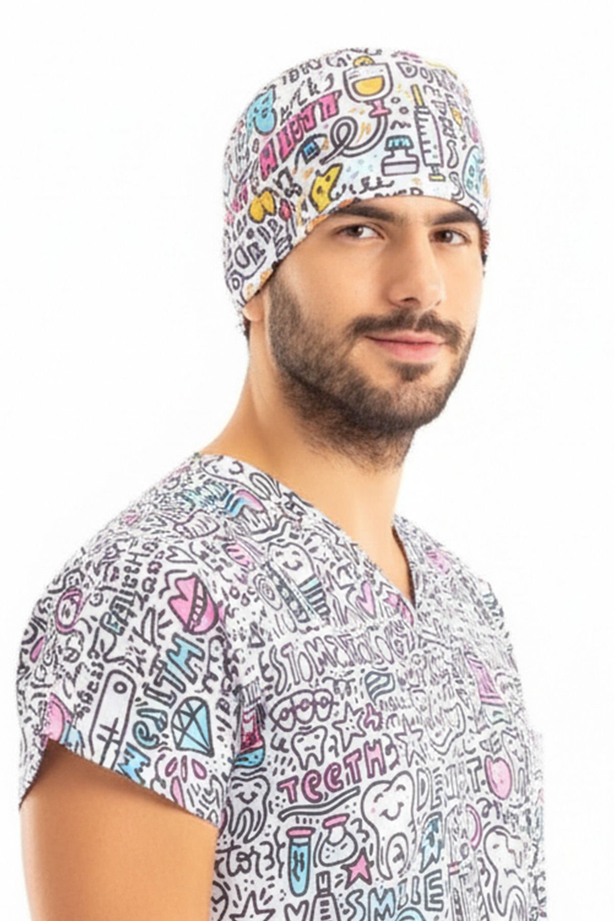 Uzun nöbetler ve yoğun çalışma saatleri boyunca profesyonel görünümünüzden ödün vermeden konfor arayan tüm sağlık profesyonelleri için tasarlandı. Beyaz zemin üzerine eğlenceli diş desenleriyle süslü bu bone, kliniğinizde veya ameliyathanenizde pozitif bir atmosfer yaratmanızı sağlayacak.