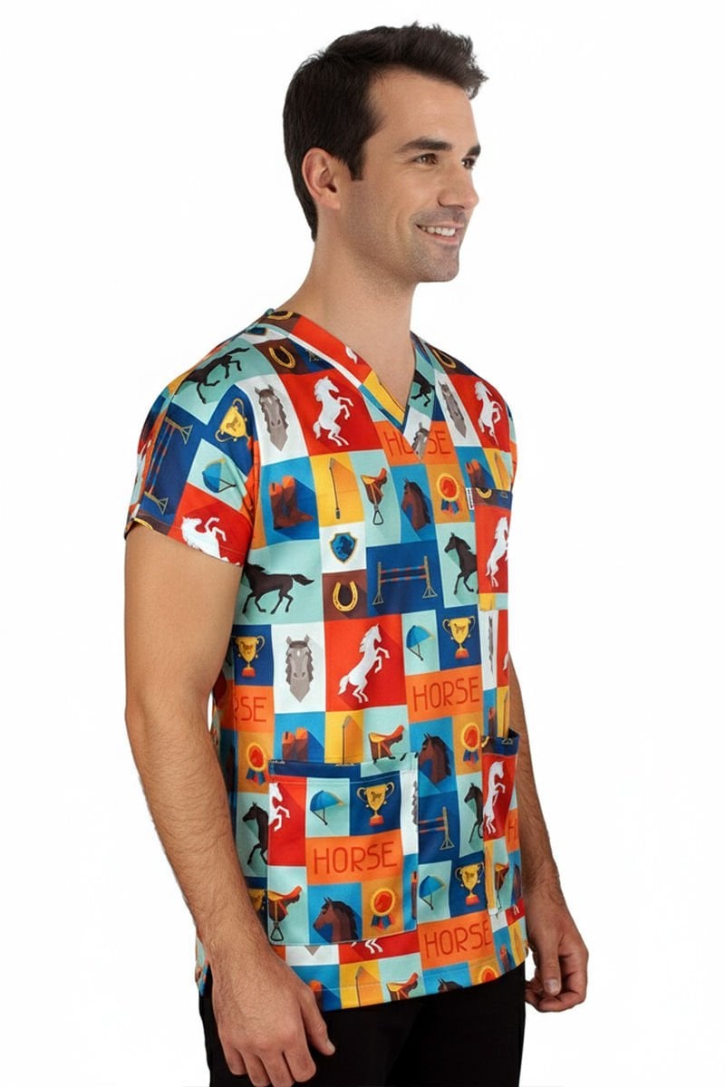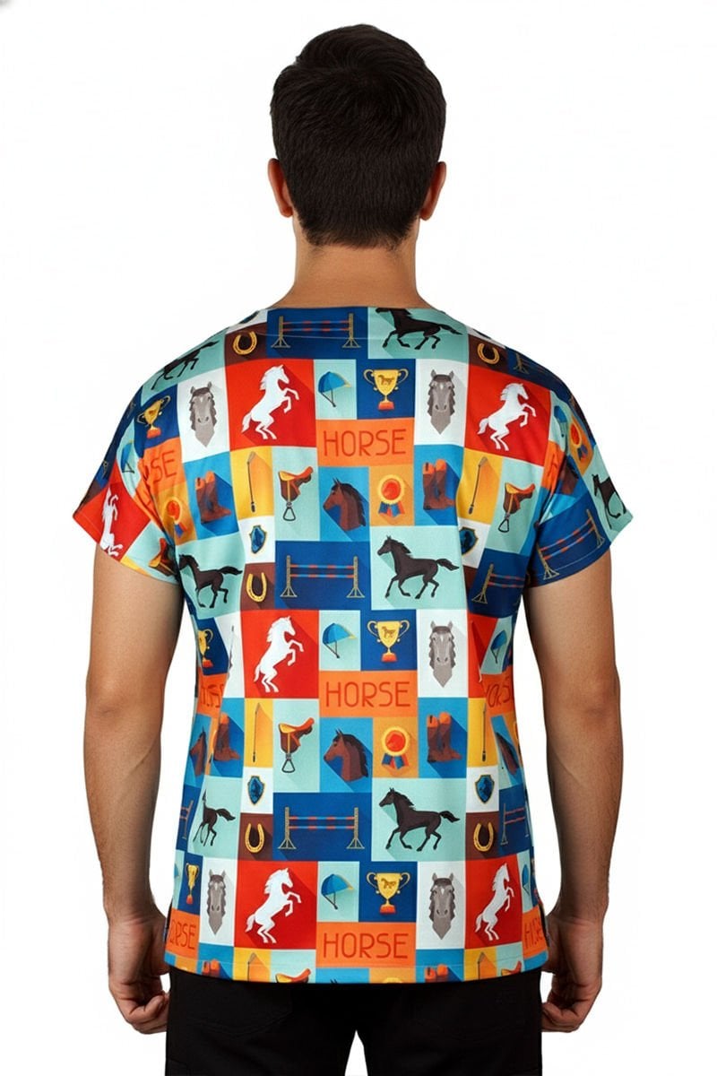 LABOR Dry Touch Şampiyon Atlar Desenli Erkek Cerrahi Üst Forma - Veteriner Hekim Serisi