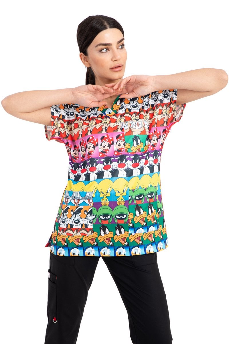Cerrahi Forma Tek Üst Desenli İnce Kumaş-Kadın