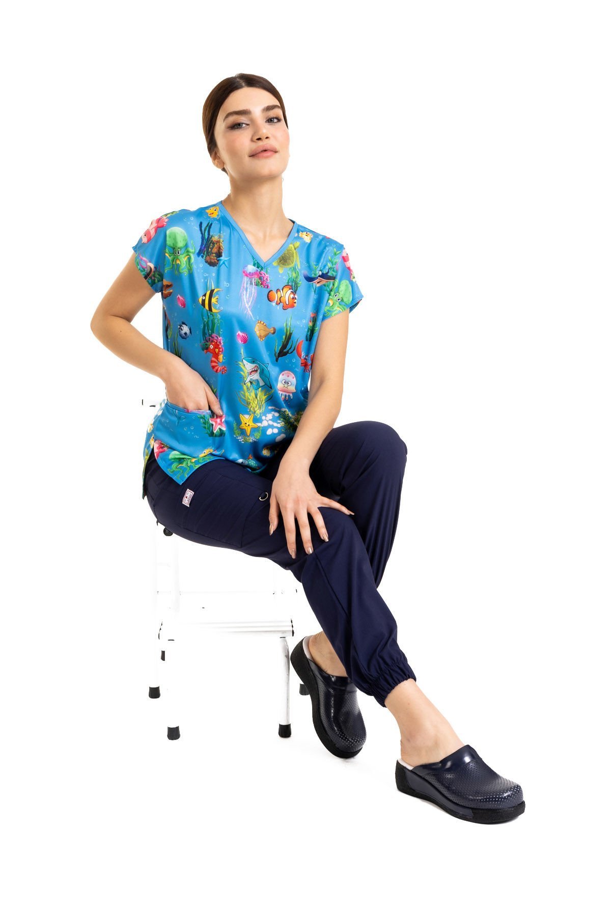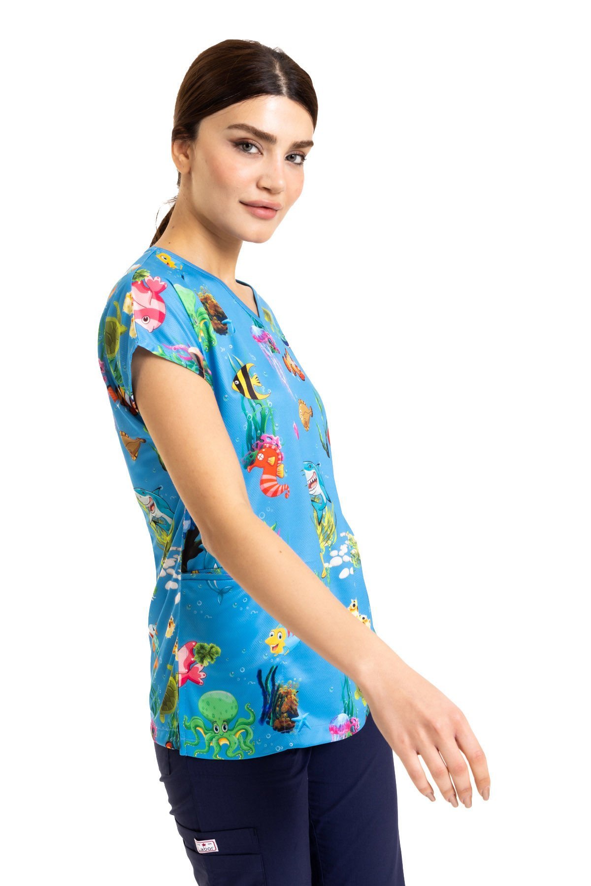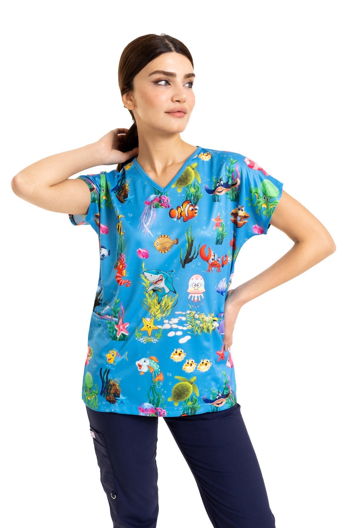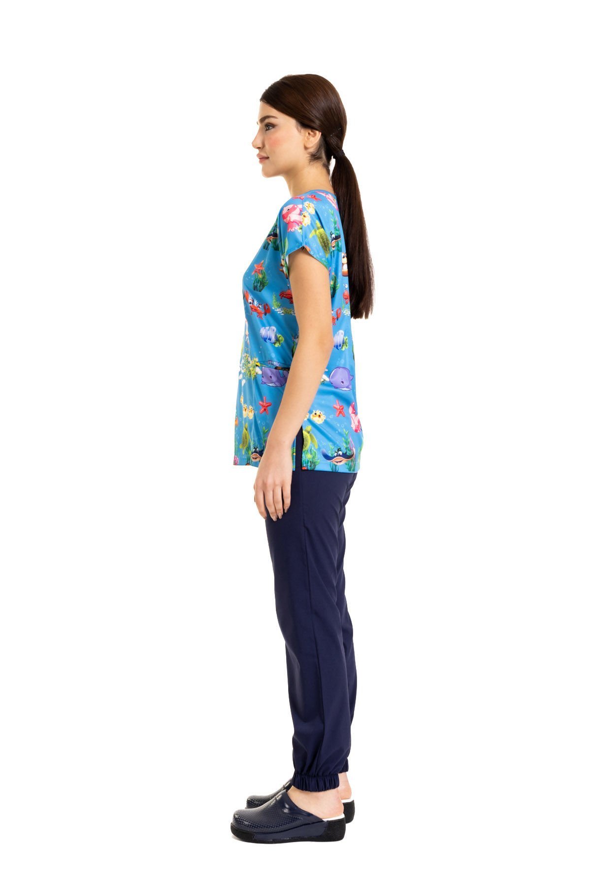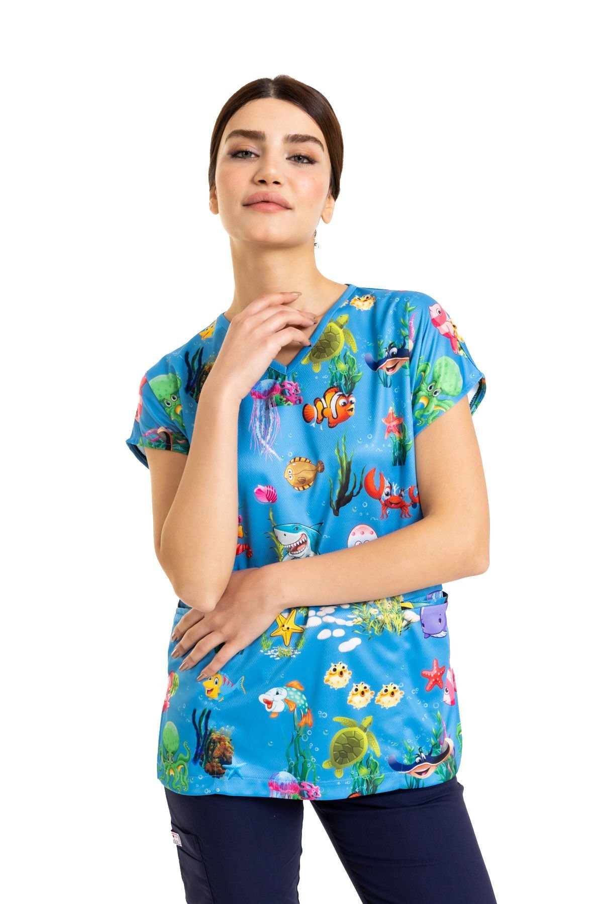 Cerrahi Desenli Kadın Tek Üst Denizler Alemi