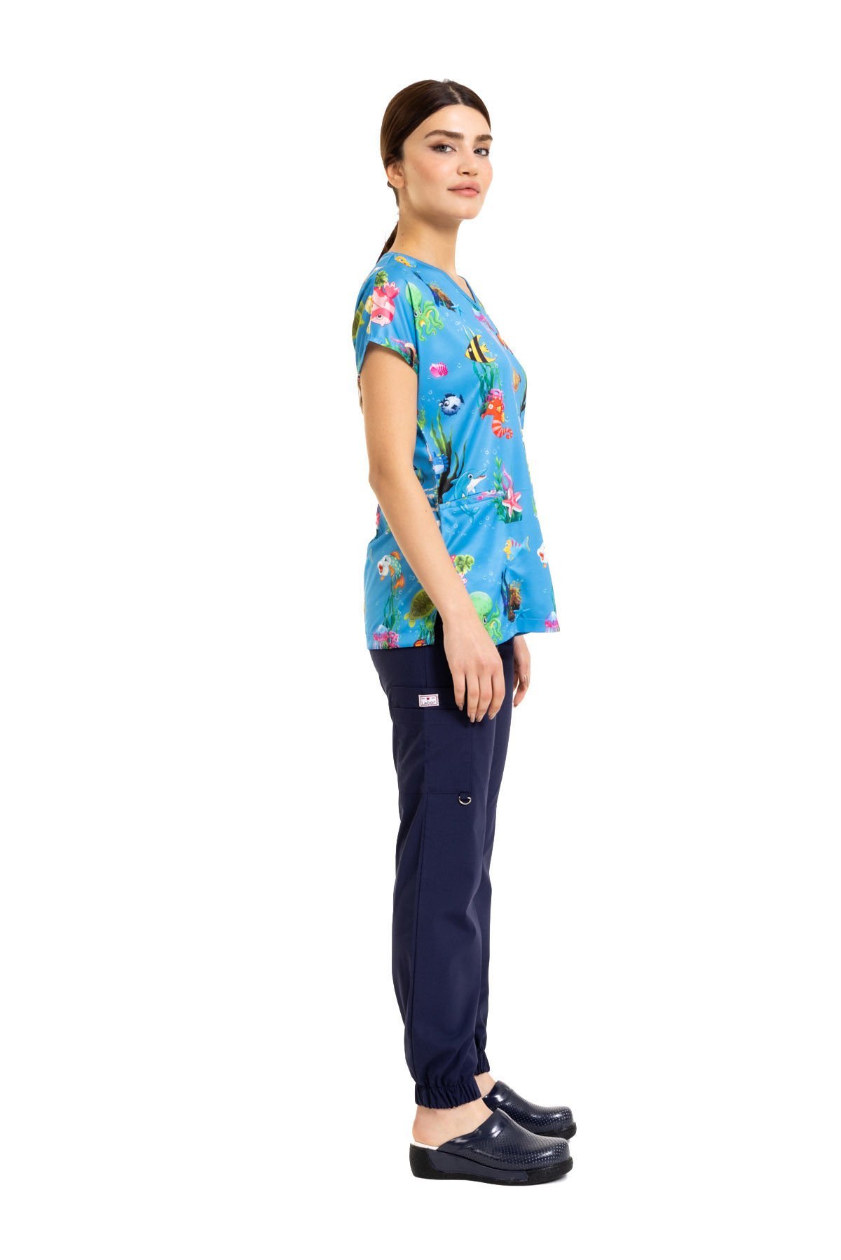 Denizler alemi desenli cerrahi kıyafet ise, özellikle cerrahların giydiği bir tür scrubs cerrahi kıyafettir. Bu kıyafet, deniz canlıları, deniz yosunu, mercan resimleri gibi deniz temasına uygun desenlerle tasarlanmıştır. Bu tarz cerrahi kıyafetler, özellikle deniz biyolojisi, sualtı cerrahisi gibi alanlarda çalışan cerrahlar tarafından tercih edilebilir.