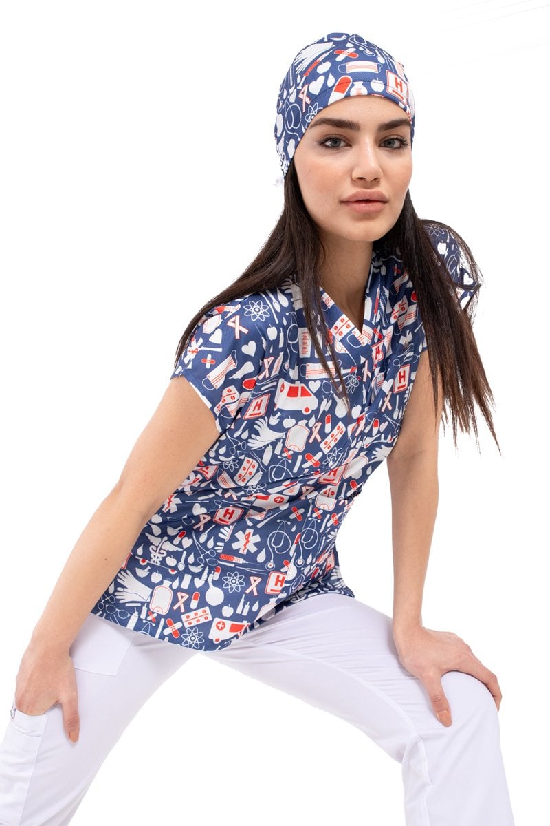 Cerrahi Desenli Kadın Tek Üst Tatd Desenli