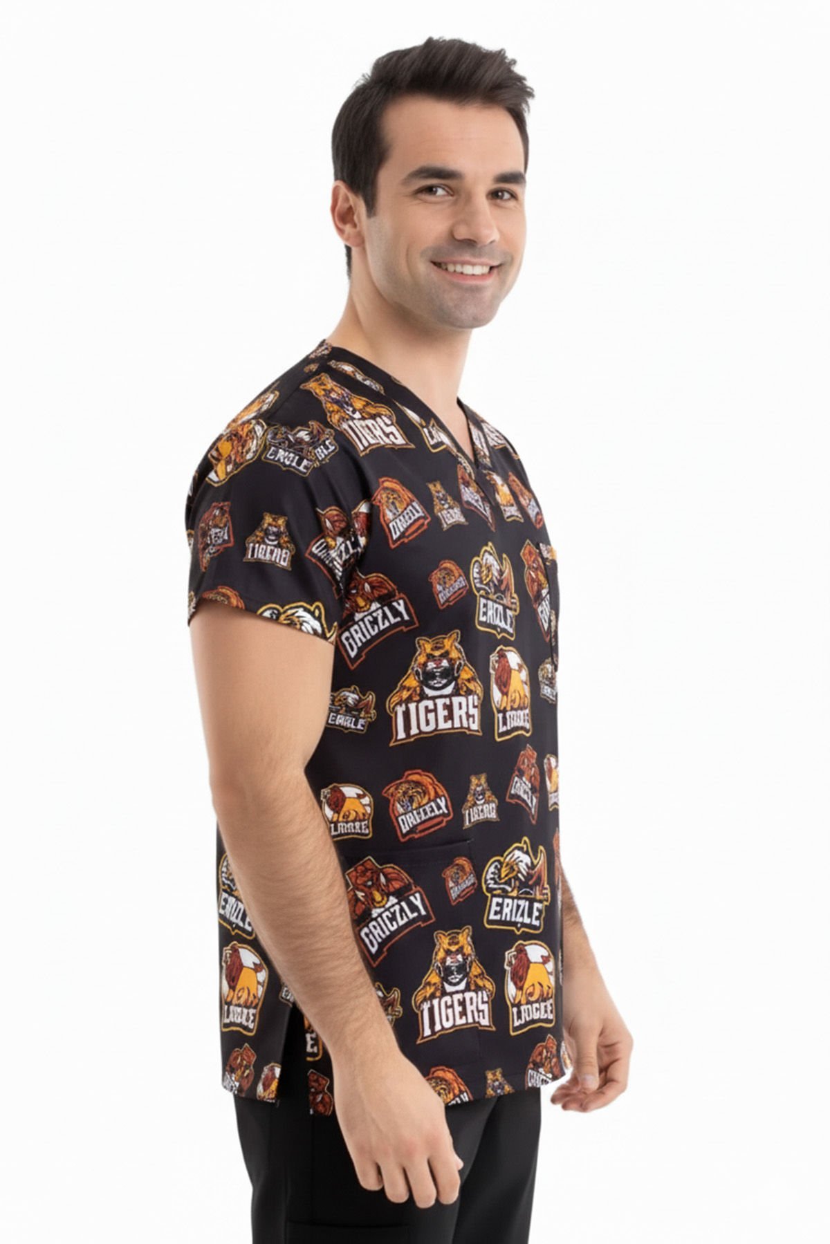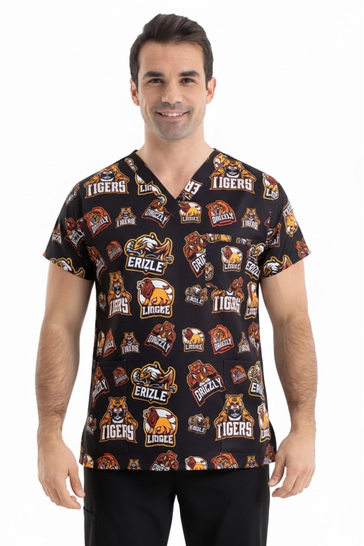 Cerrahi forma erkek tek üst vahşi doğa desenli