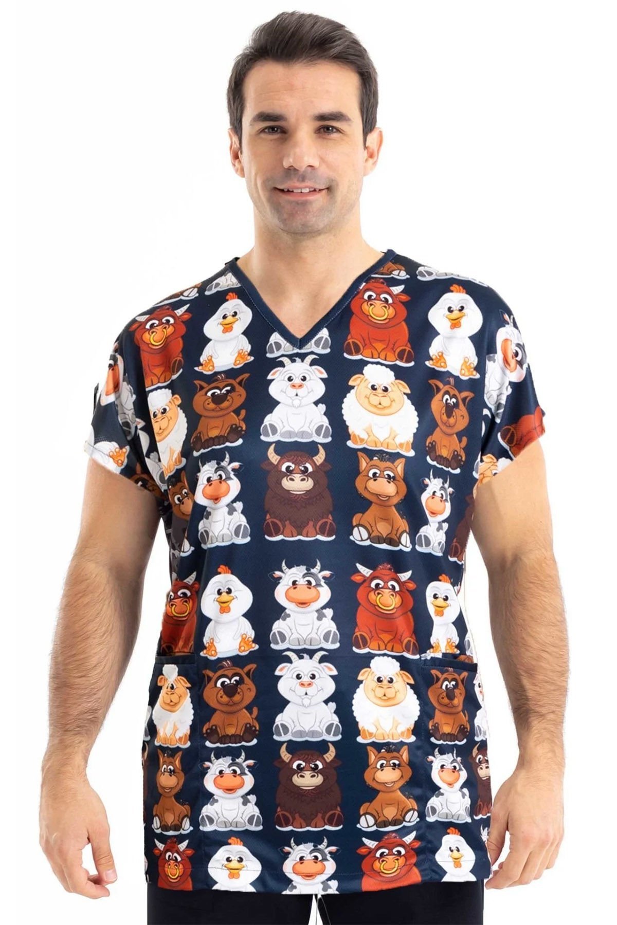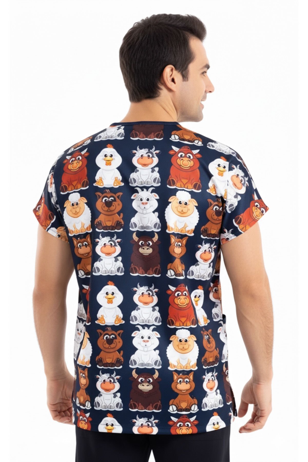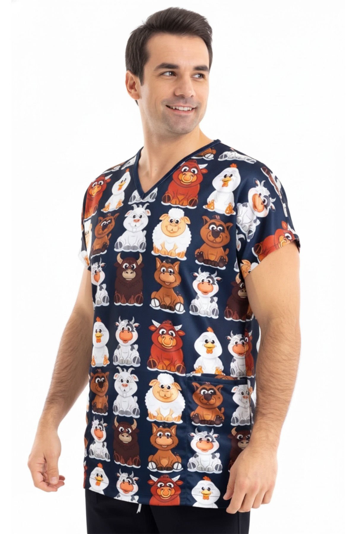 Cerrahi forma erkek tek üst yeni çiftlik desenli