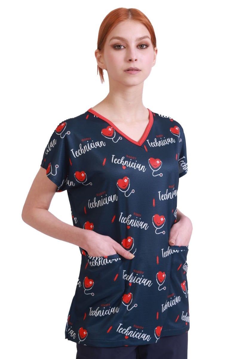 Cerrahi Forma Tek Üst Desenli İnce Kumaş-Kadın