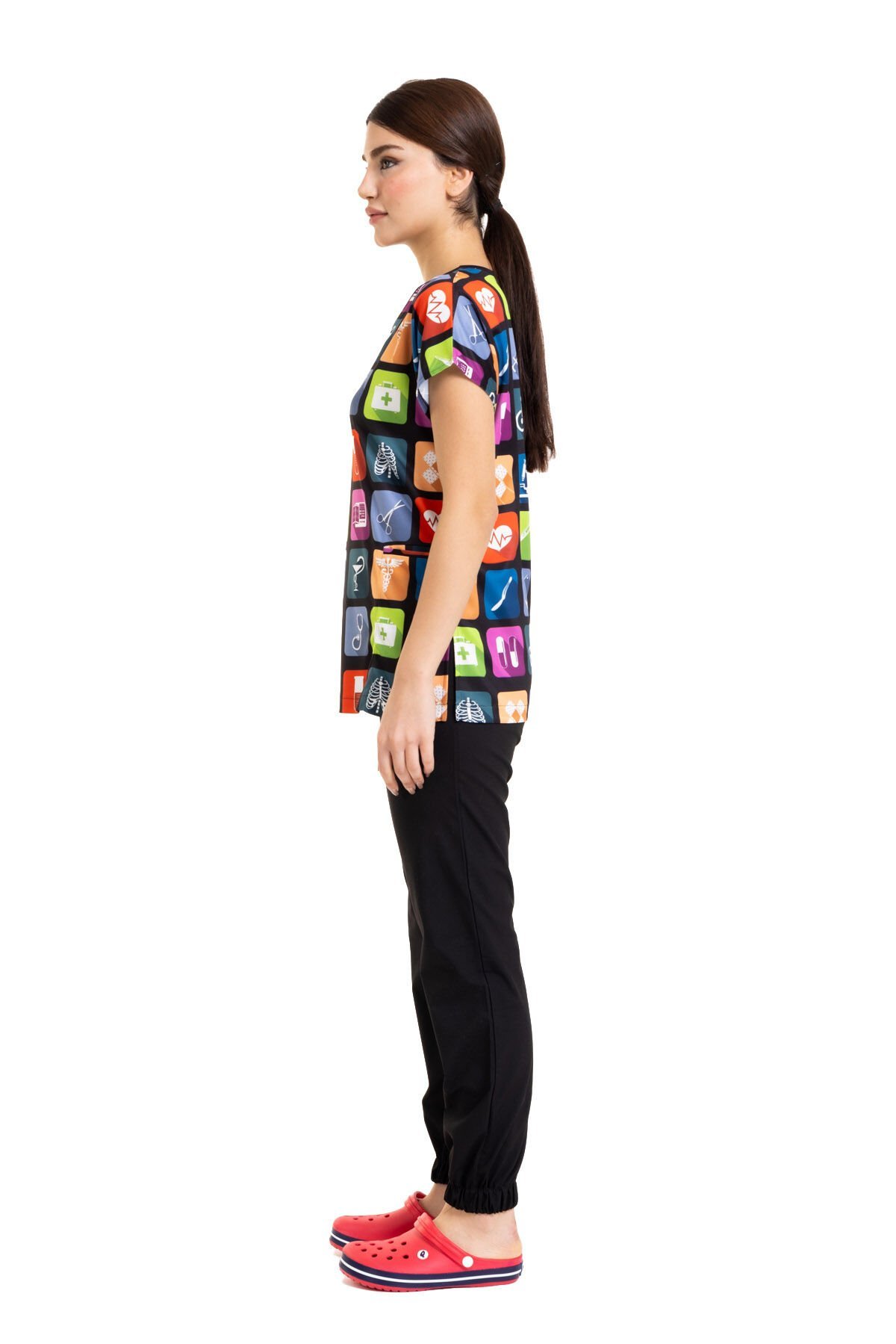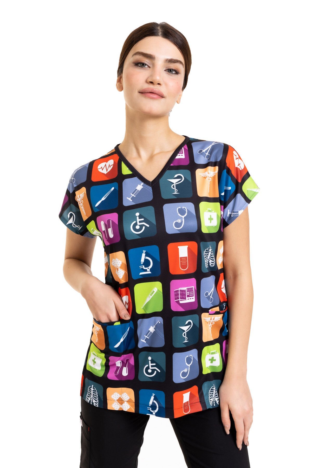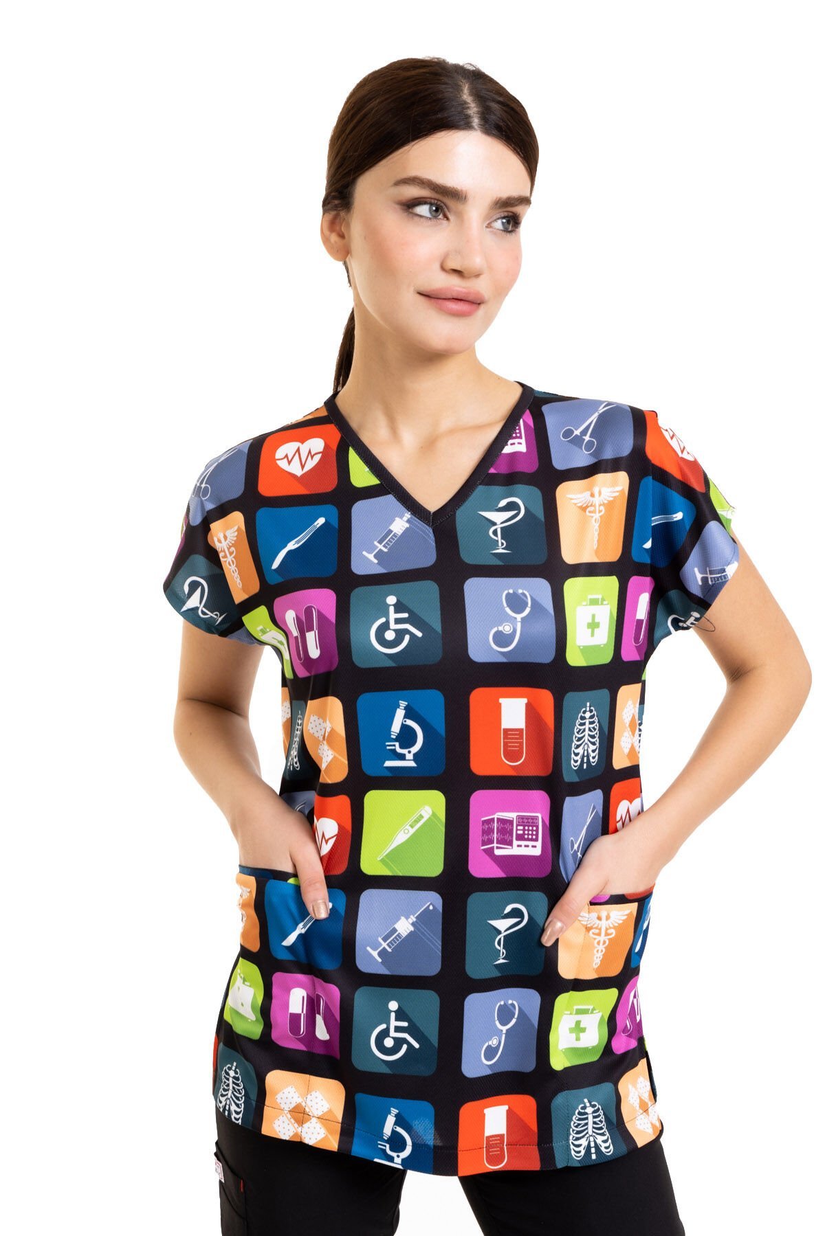 Cerrahi Forma Kadın Tek Üst Tıp Dünyası Desenli