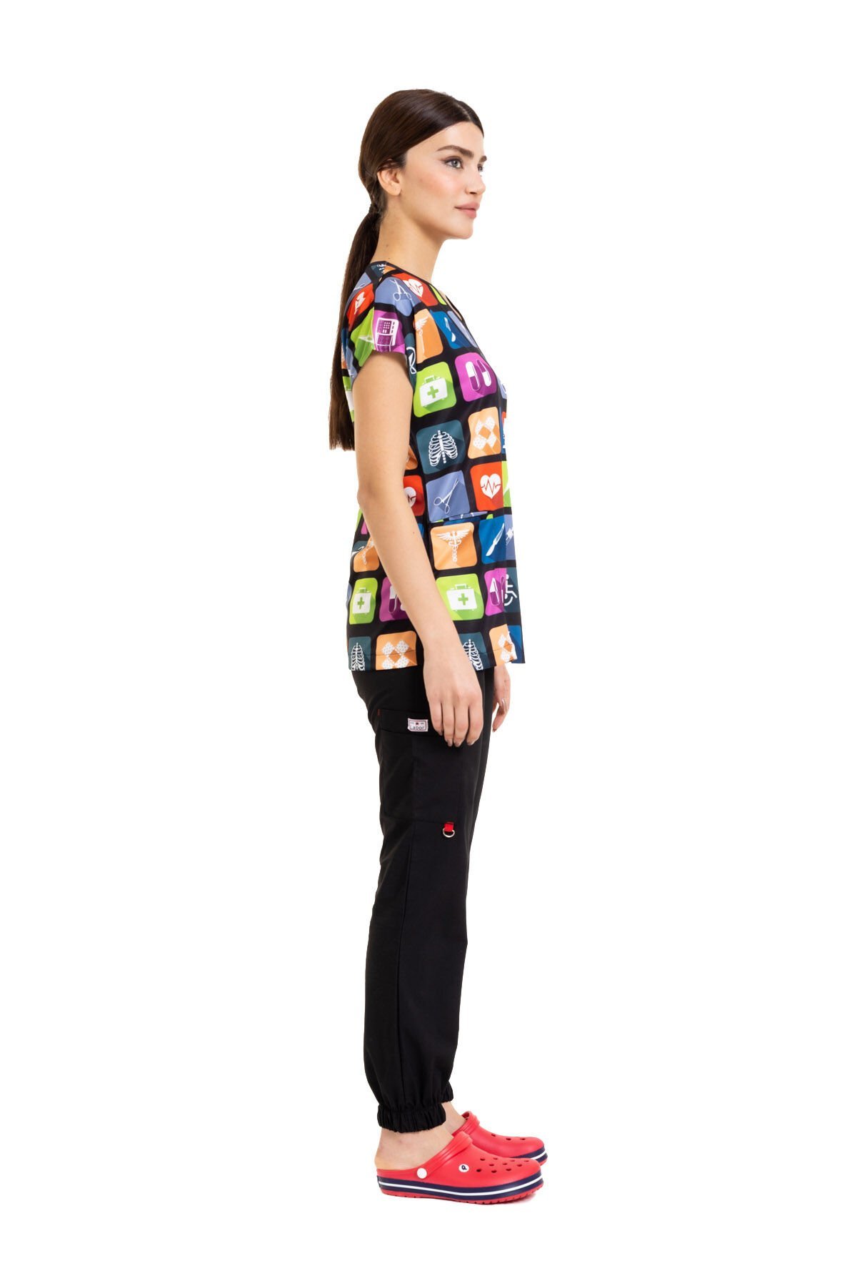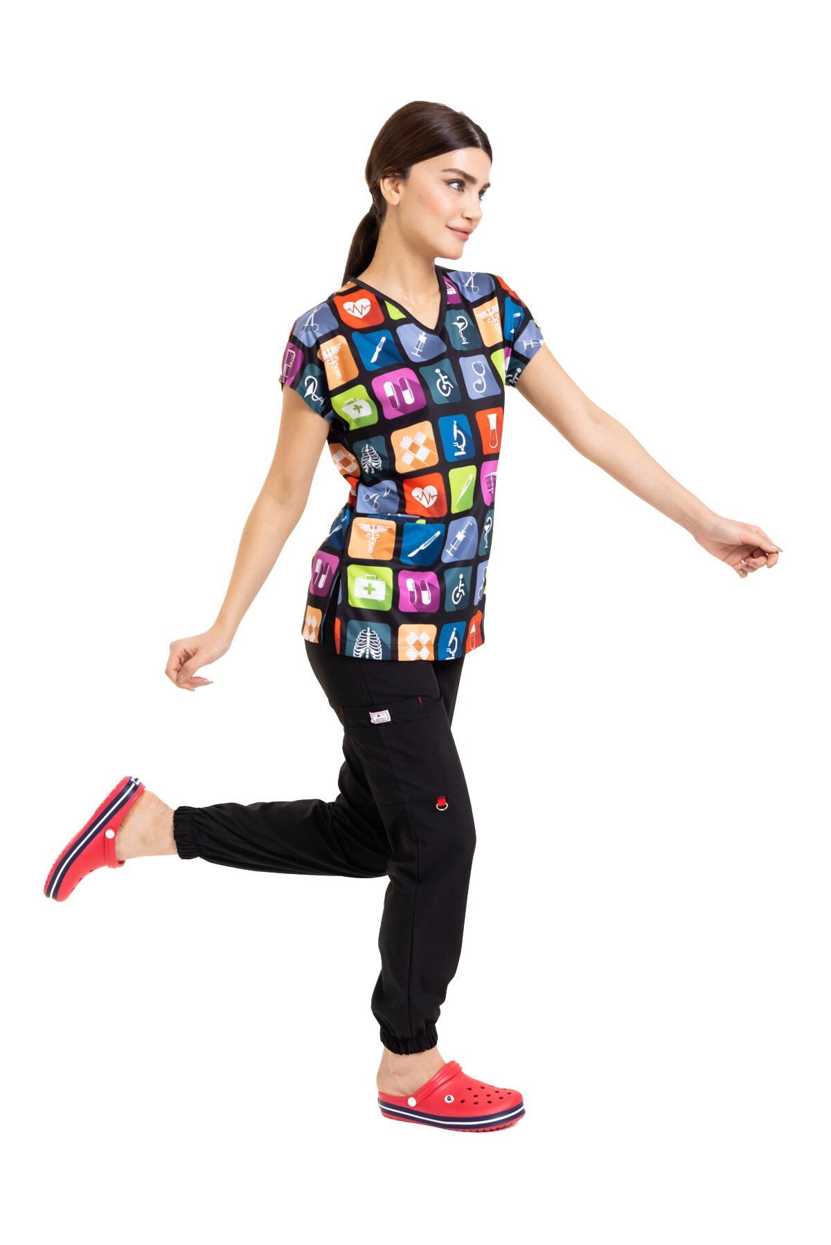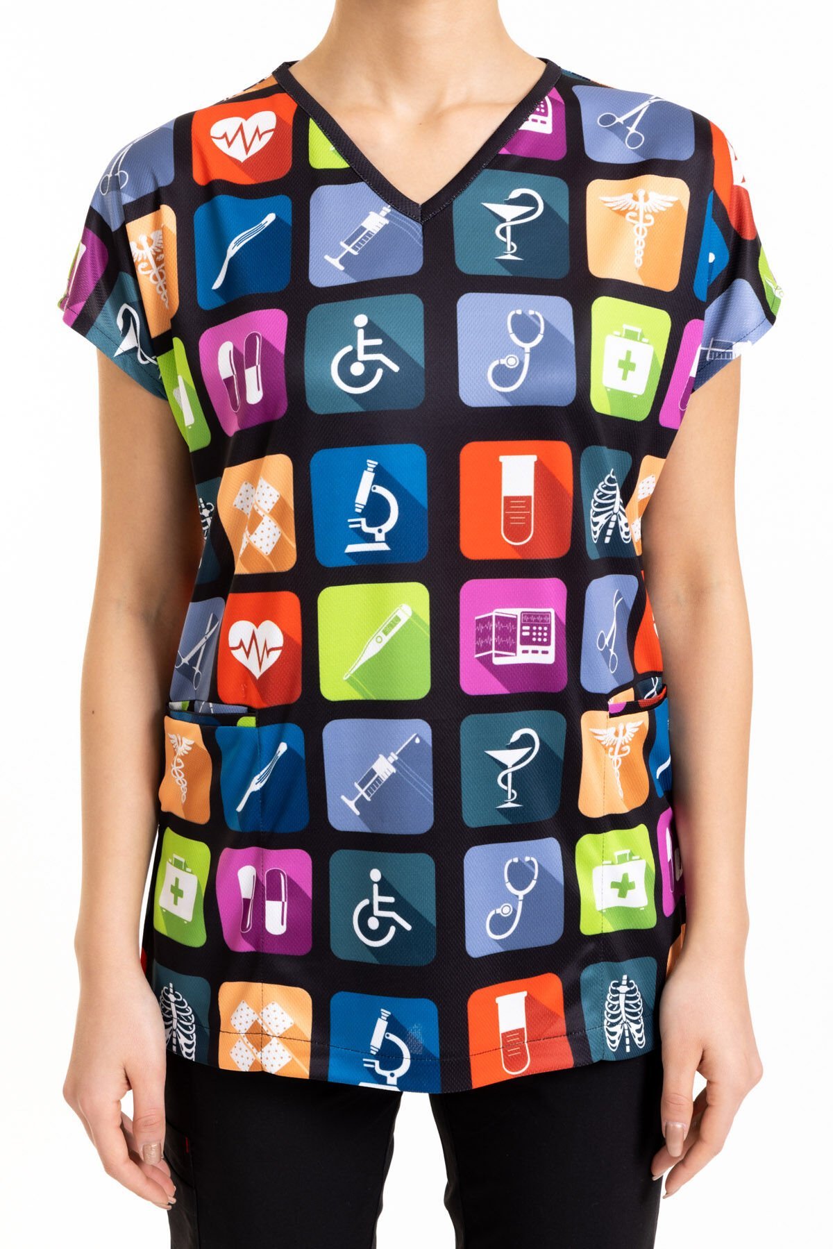 Cerrahi Forma Kadın Tek Üst Tıp Dünyası Desenli