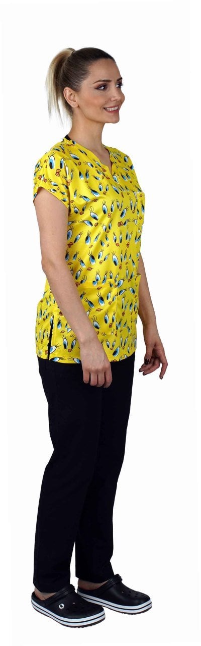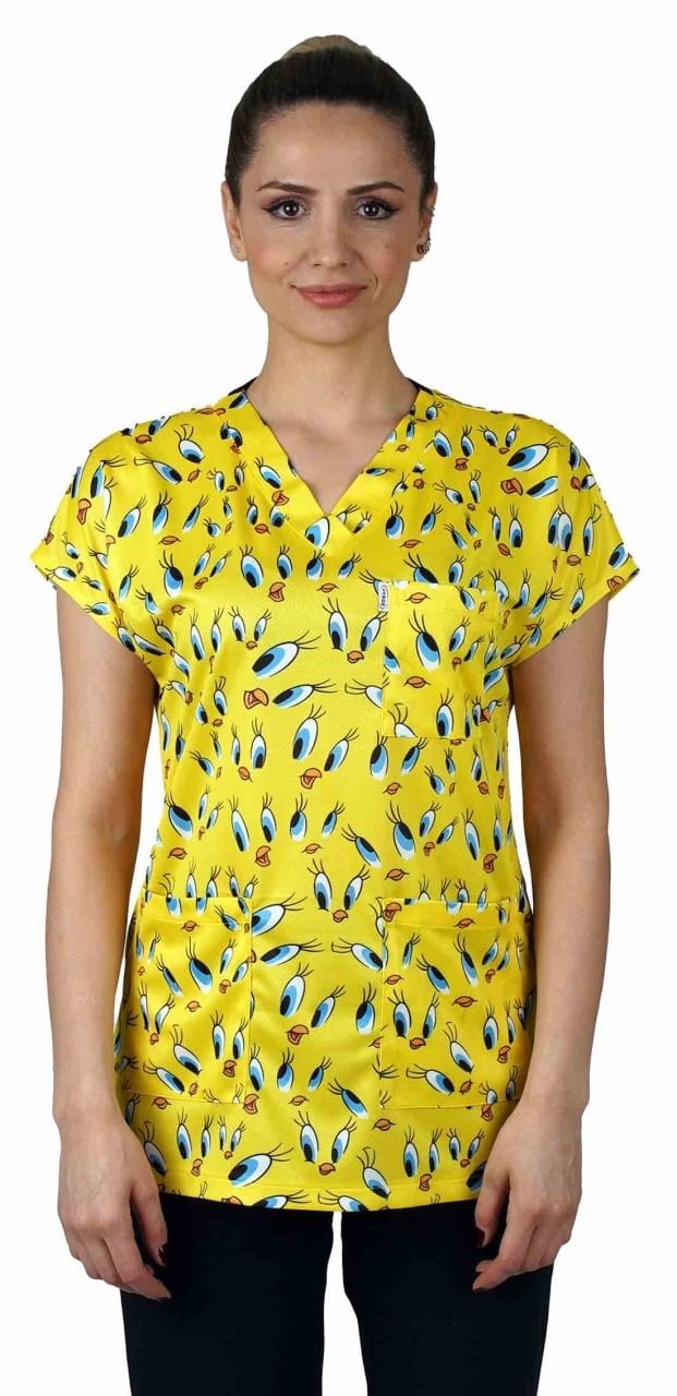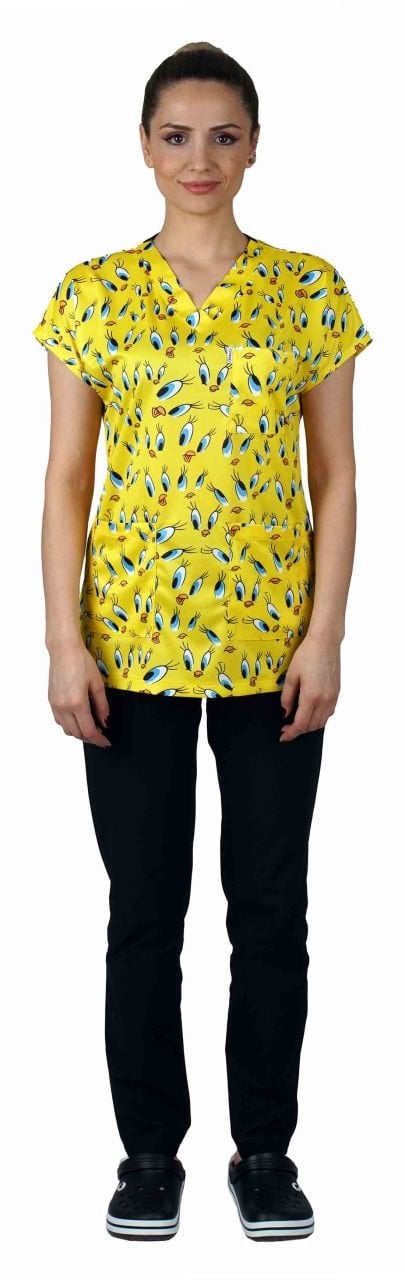 Cerrahi Forma Sarı Civciv Desenli İnce Kumaş-Kadın