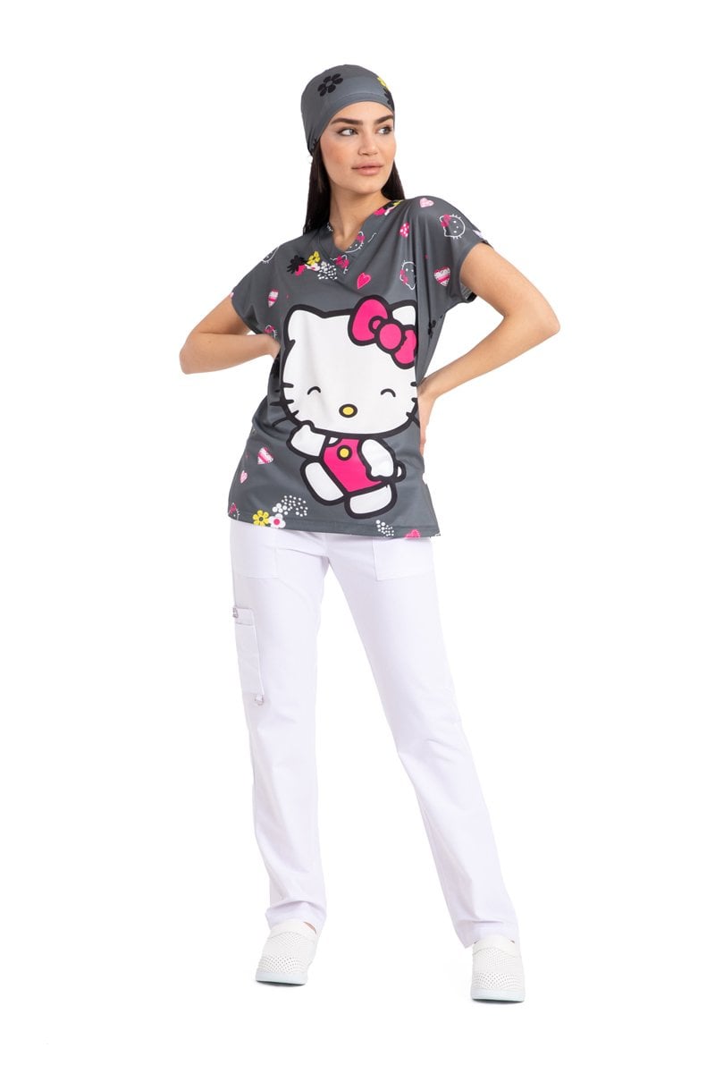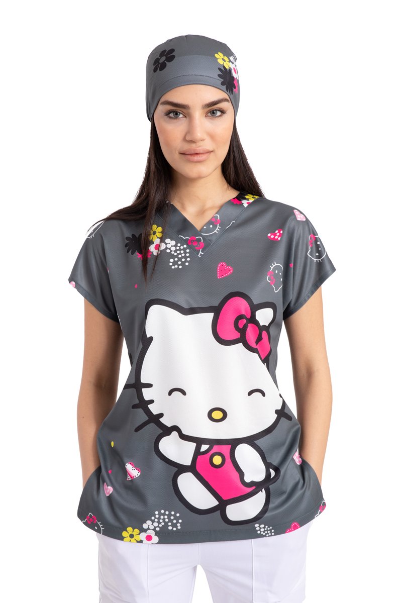 Cerrahi Forma Tek Üst Desenli İnce Kumaş-Kadın