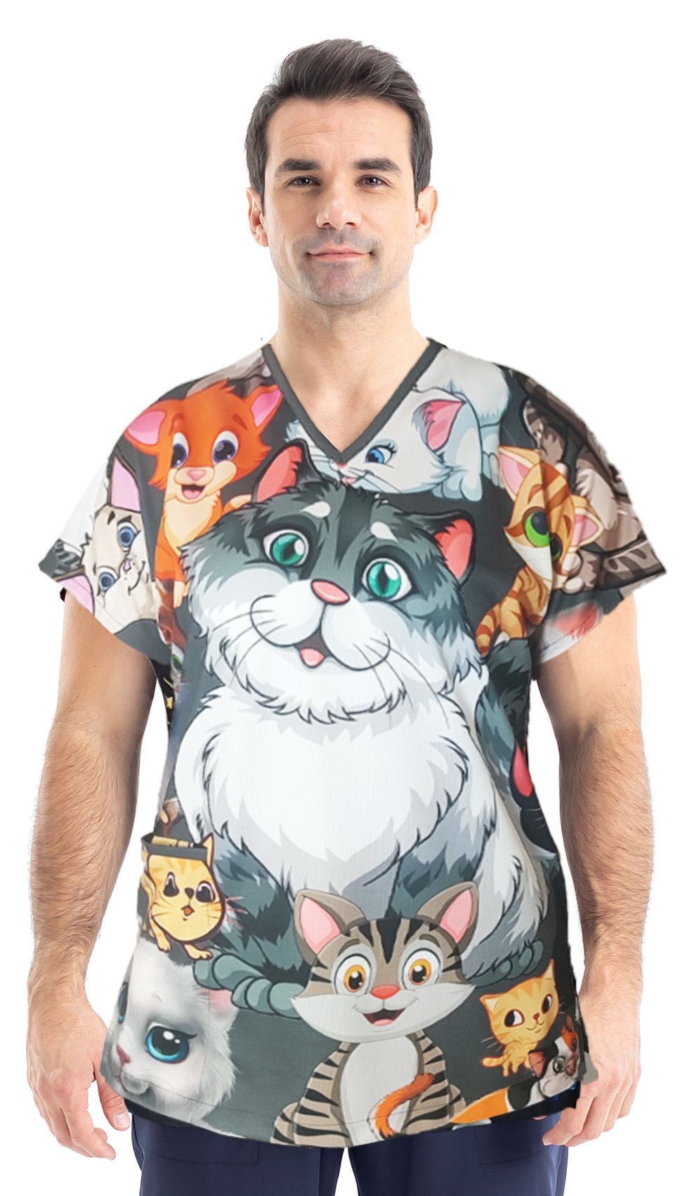 Dr. Greys Şımarık Kediler Desenli Erkek Cerrahi Forma Üst