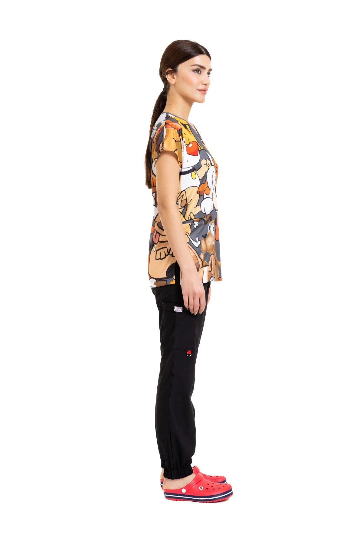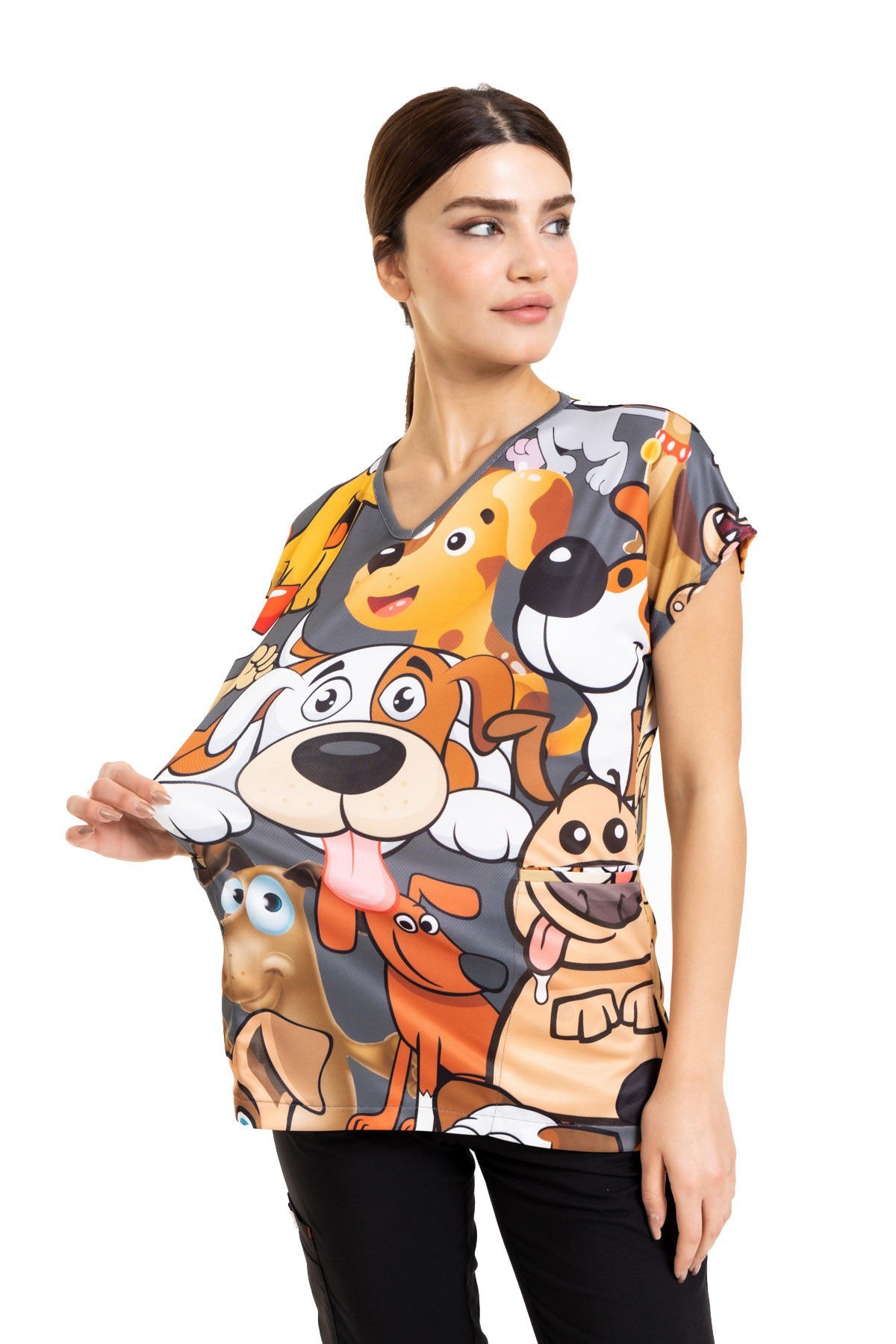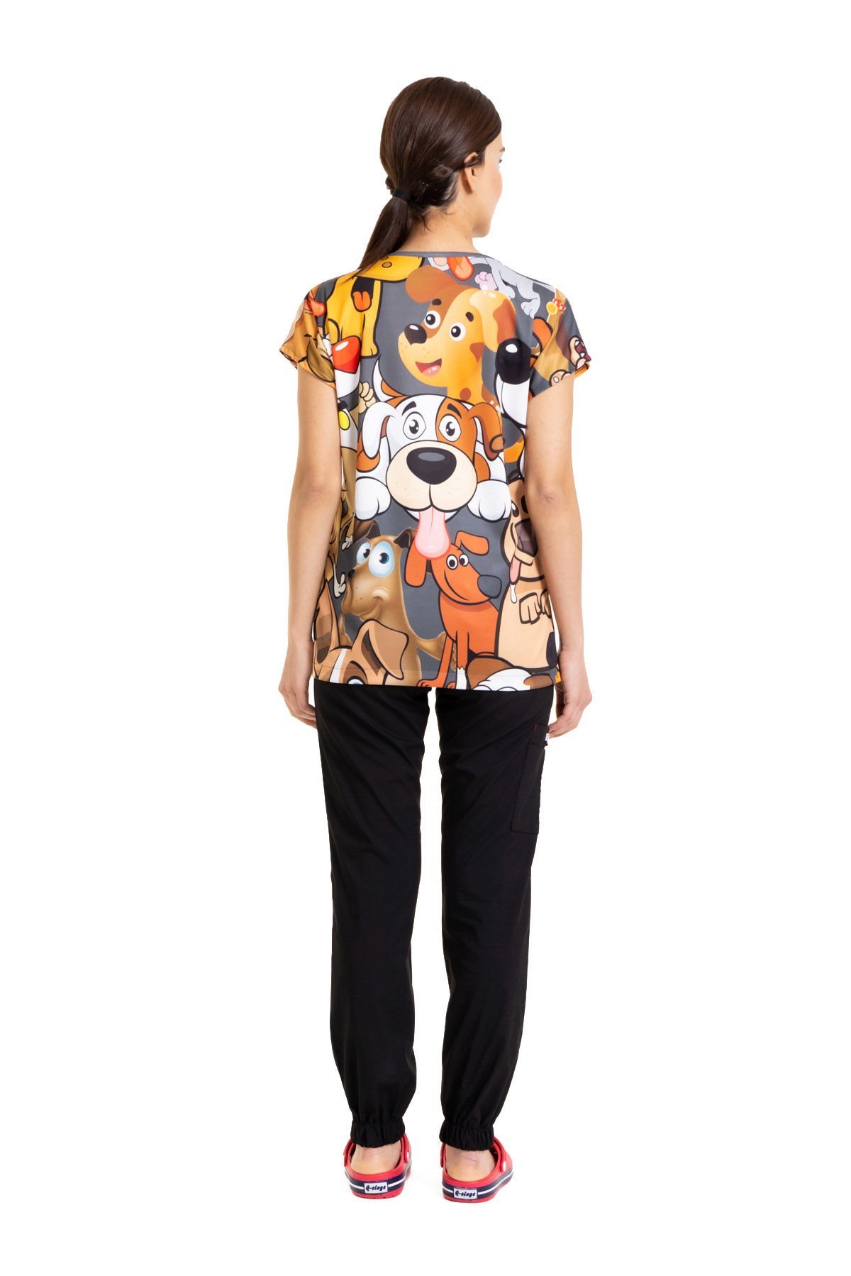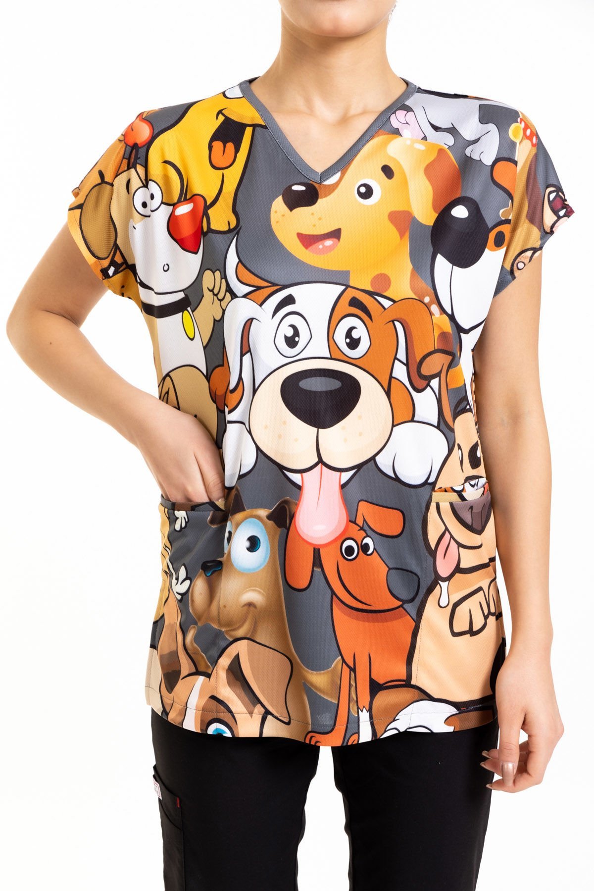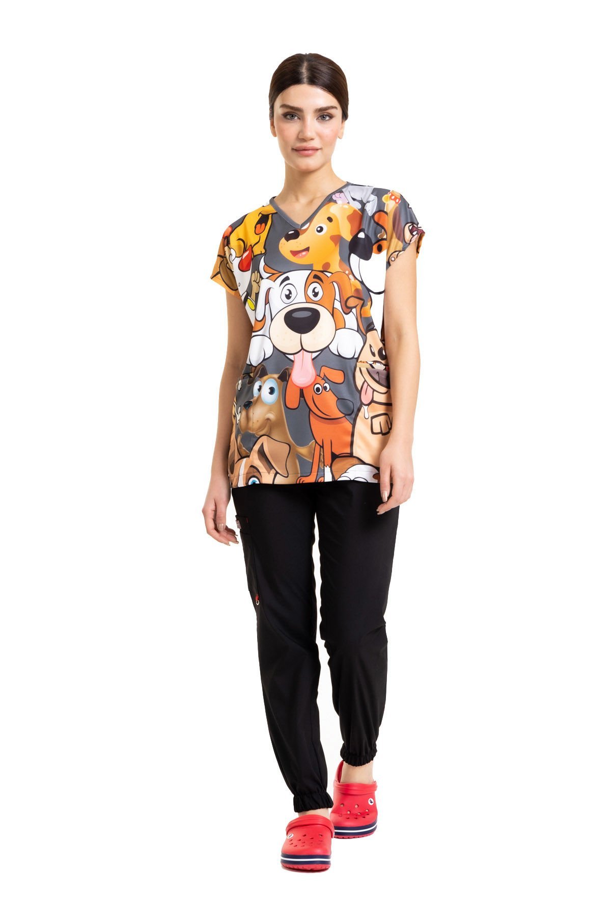 Cerrahi forma üst kadın model gri şımarık köpekler