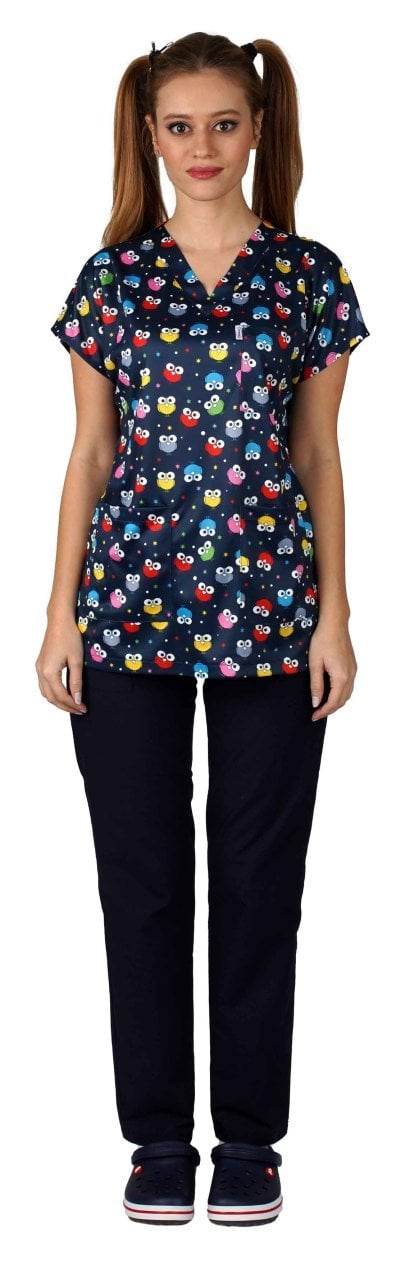 Cerrahi Forma Tek Üst Desenli İnce Kumaş-Kadın