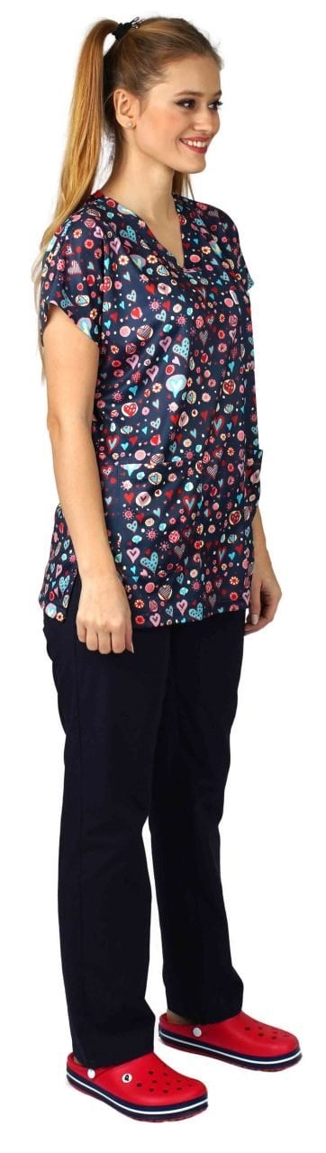 Cerrahi Forma Tek Üst Desenli İnce Kumaş-Kadın