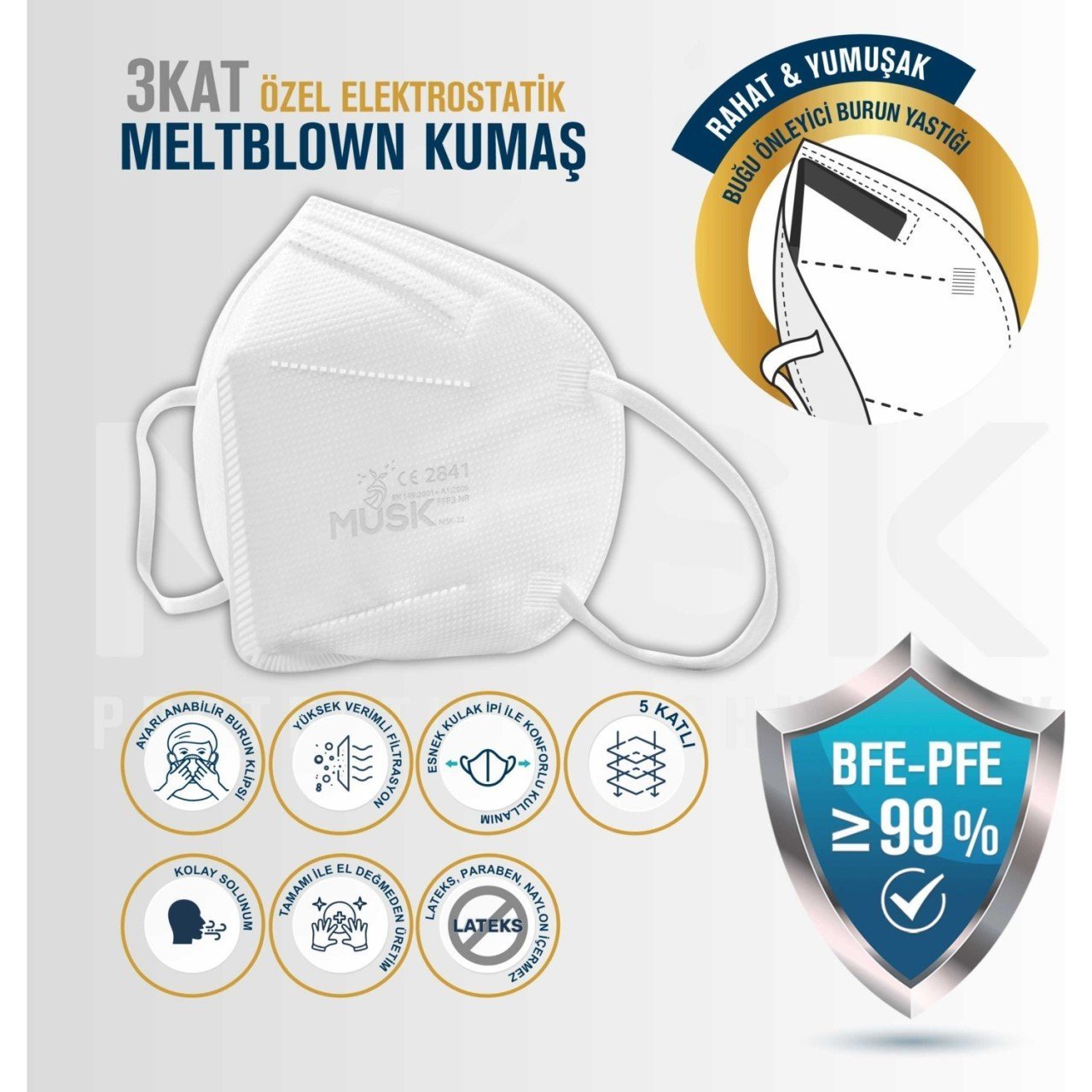 Cerrahi maske 1 kutu 10 adettir Musk FFP3 99 filtreleme beyaz renk