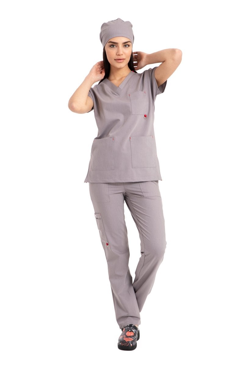 Dr. Elastik Likralı Bayan Cerrahi Forma Gri