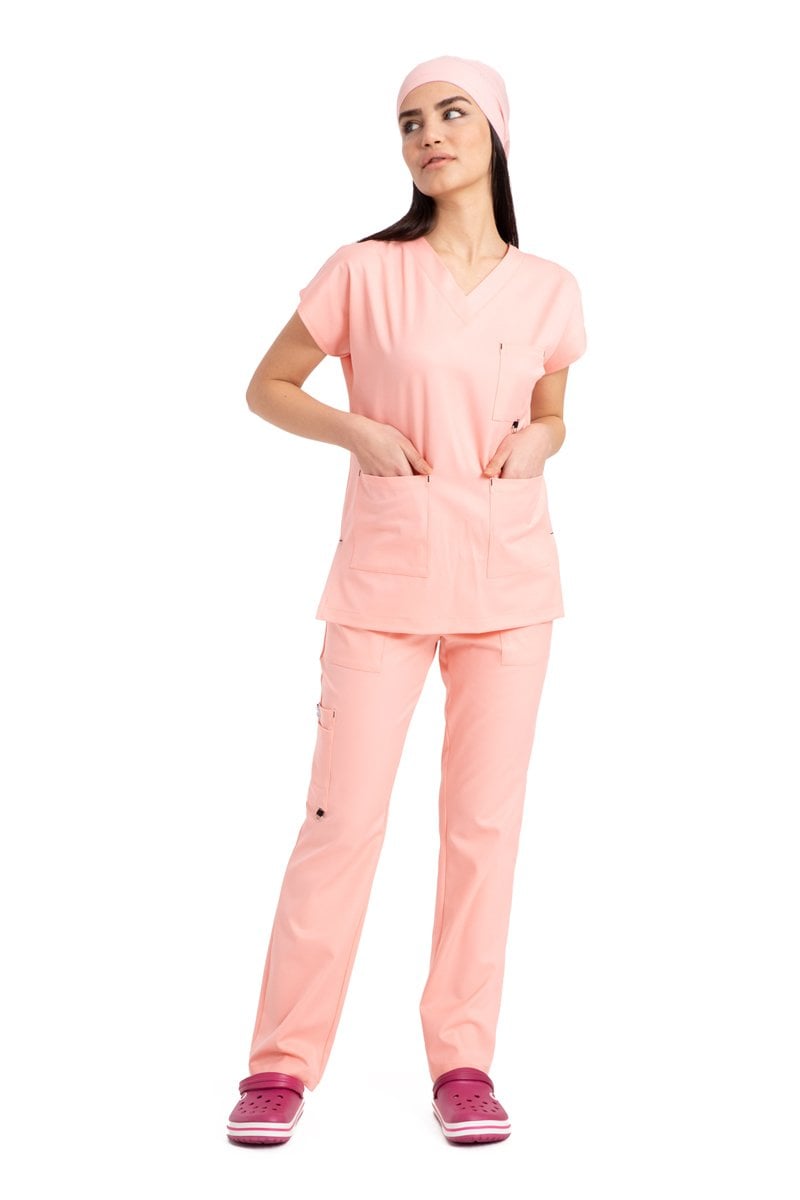 Dr. Elastik Likralı Bayan Cerrahi Nöbet Takımı Pembe