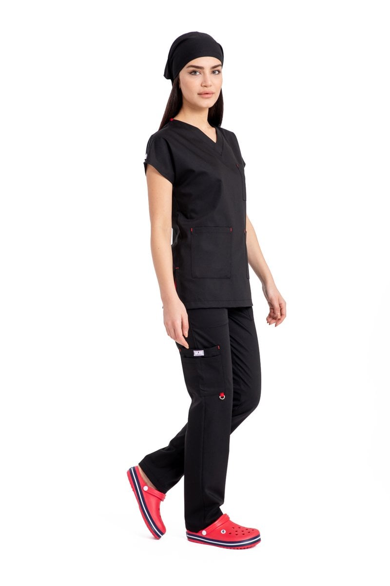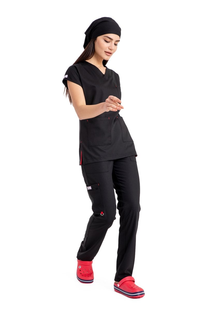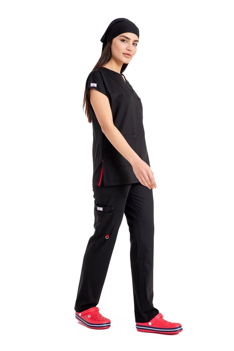 Likrali Yarasa Kol Siyah Renk Ameliyathane ve Nöbet Cerrahi Forma Takımı