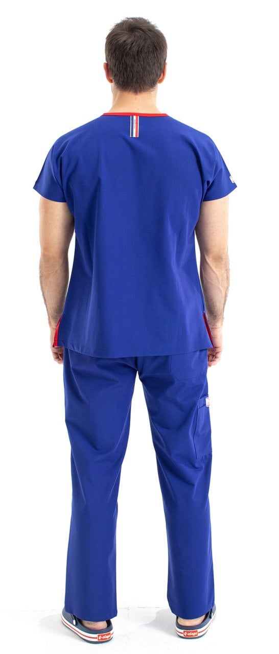 Cerrahi müdahalelerde konfor ve işlevselliği bir araya getiren bu özel takım, erkek sağlık profesyonelleri için özel olarak tasarlanmıştır. Saks mavisi rengi ve likralı pamuklu kumaşı ile dikkat çeken bu takım, modern ve şık bir görünüm sunar.