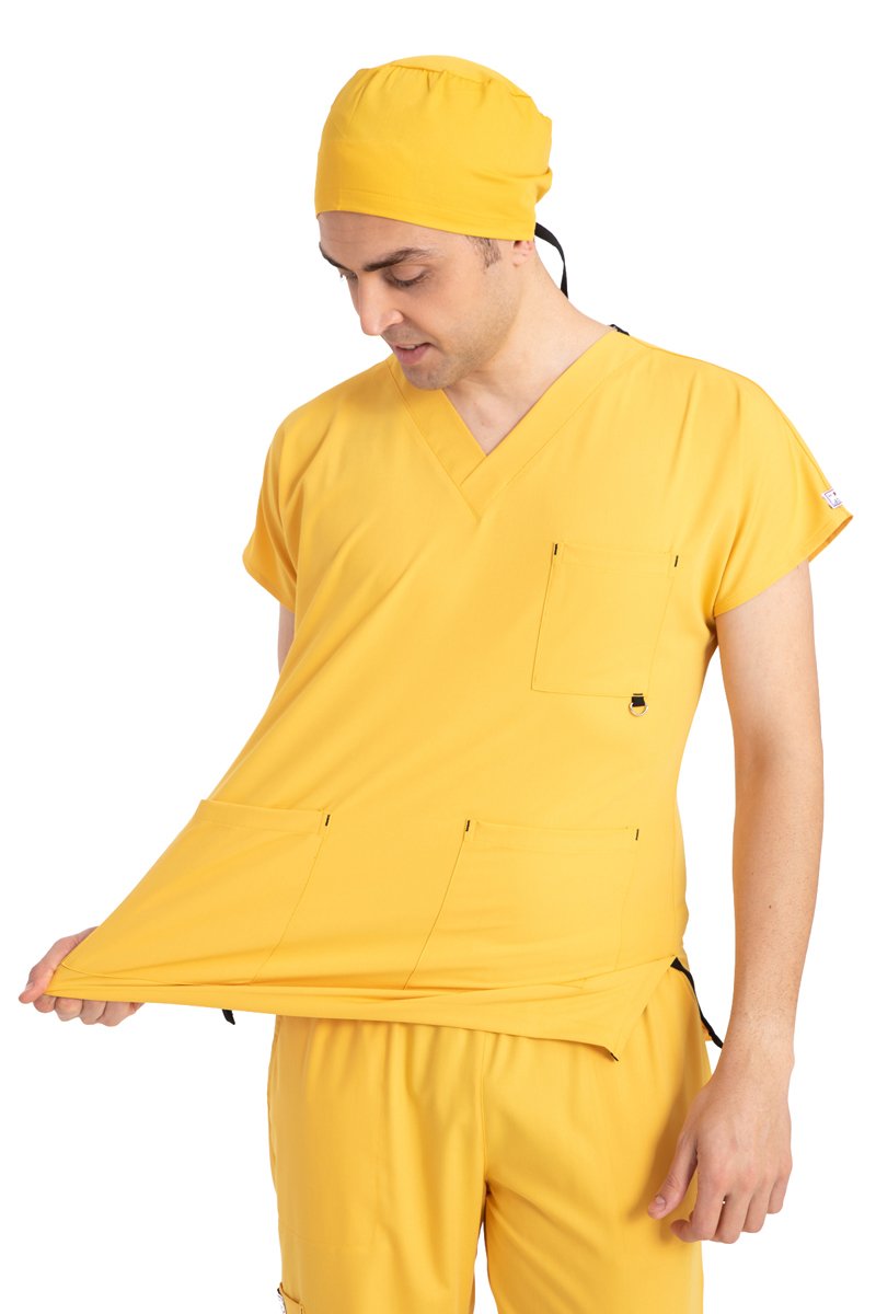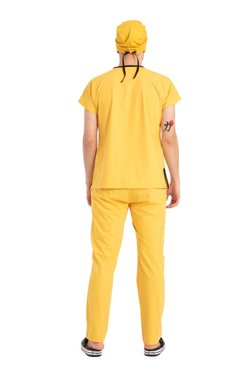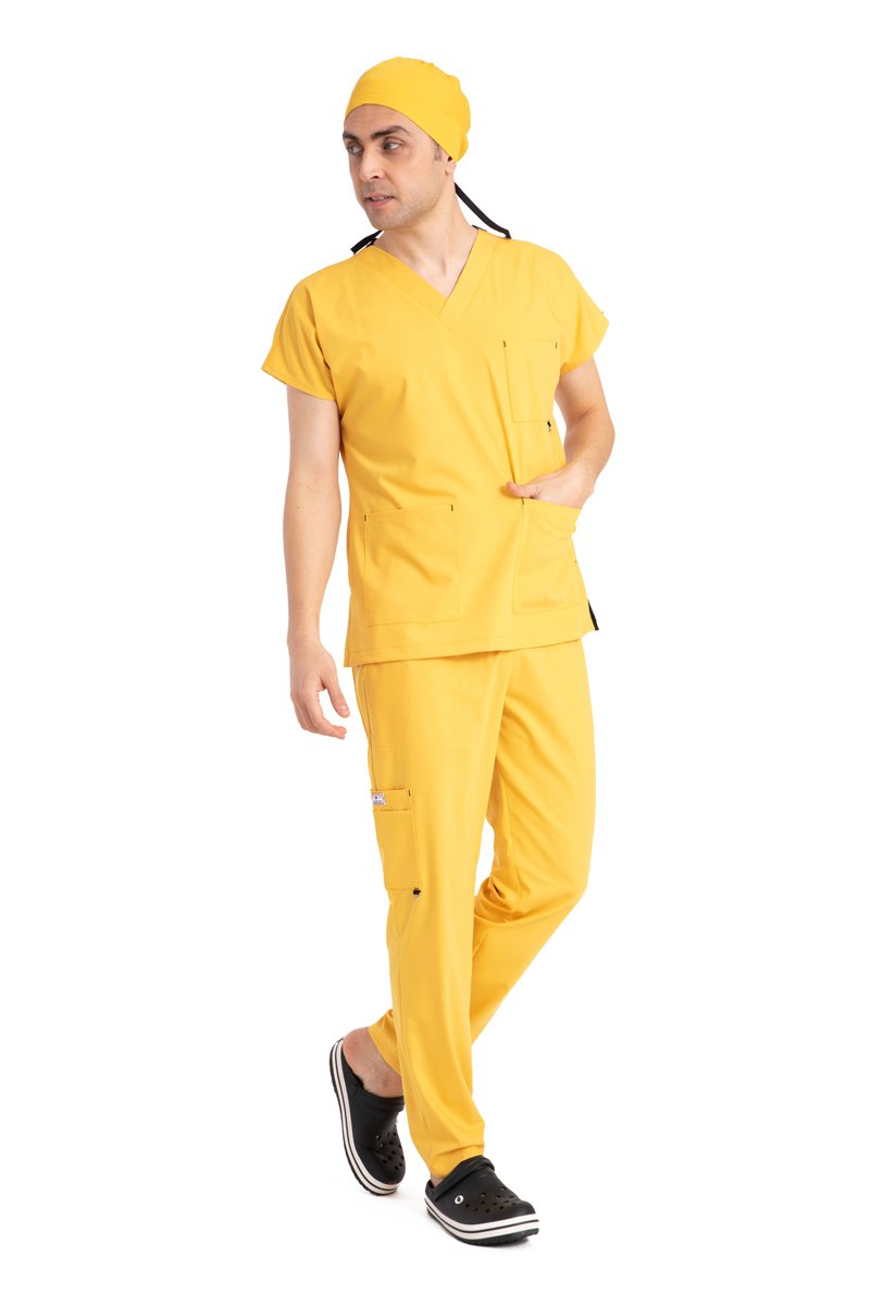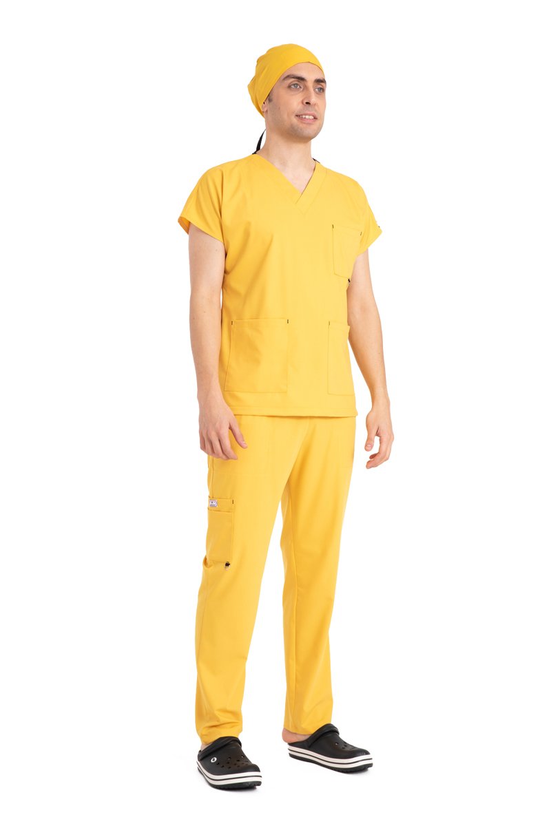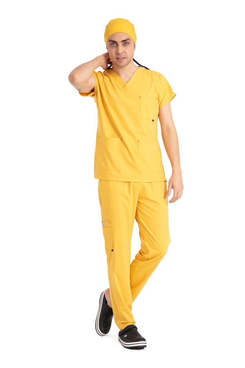 "Enerjinizi Yansıtan Parlak Bir Seçim: Dr Elastik Scrubs Likralı Pamuklu Erkek Sarı Takım"