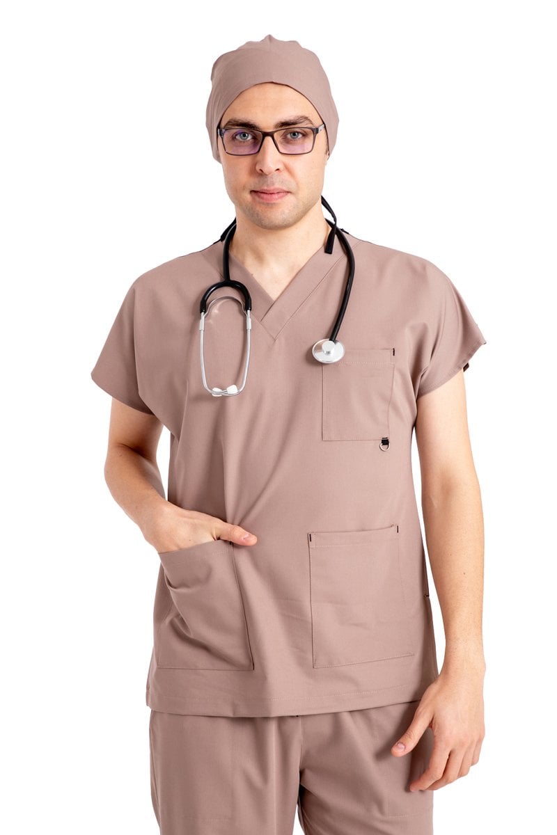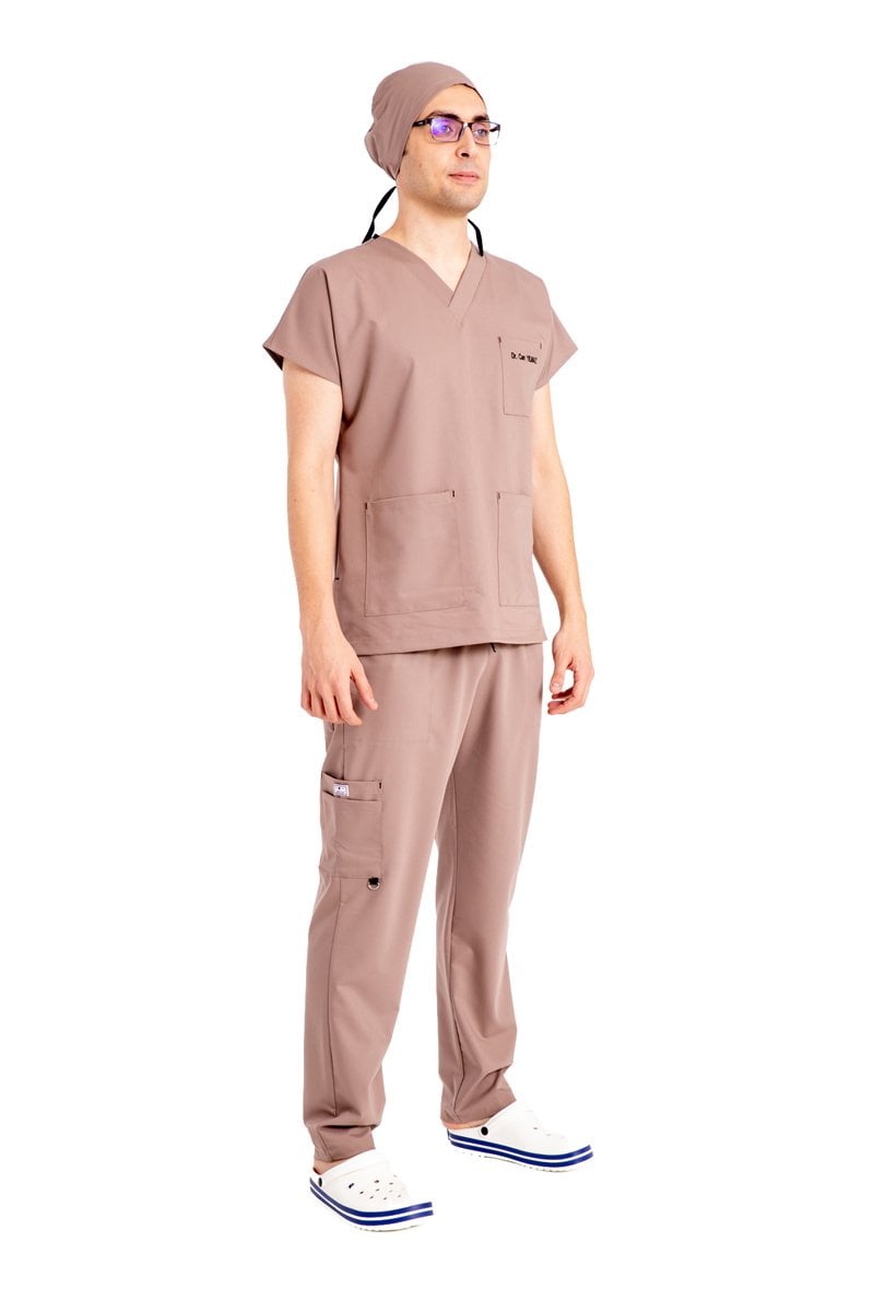 Sağlık sektörünün dinamik dünyasında çalışan erkeklerin, hem işlevsellik hem de şıklık arayışına cevap veren Dr Greys Model Likralı Pamuklu Erkek Toprak Renk, gün boyu konforlu ve stil sahibi olmanızı sağlar.