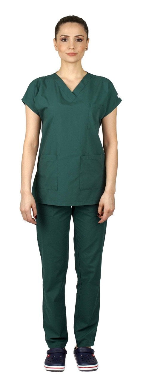 Dr.Greys Modeli Cerrahi Forma Bayan Takım Terikoton Kumaş Haki Yeşil