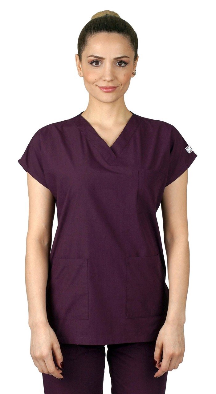 Dr.Greys Modeli Cerrahi Forma Bayan Terikoton Kumaş Mürdüm Renk