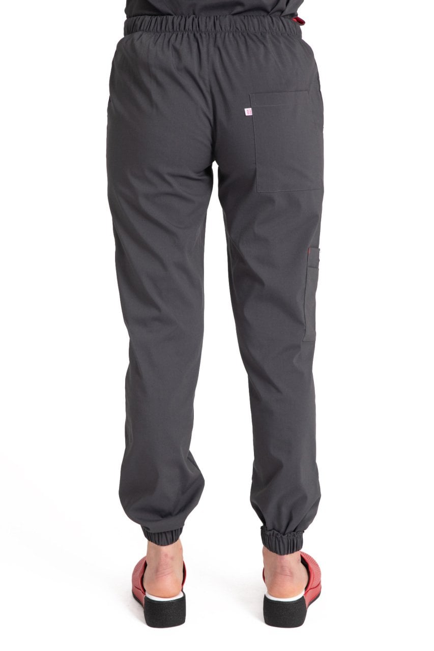 Kadın Dr. Jogger Scrubs Pantolon | Esnek Likralı Terikoton Tek Alt | LABOR Füme - 50-4XL Özel Sipariş