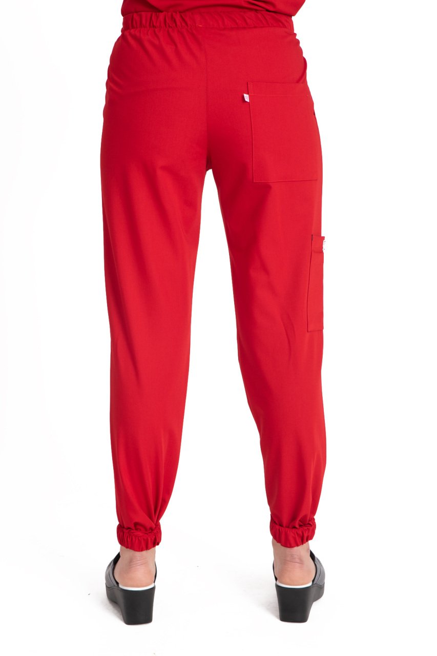 Kadın Dr. Jogger Scrubs Pantolon | Esnek Likralı Terikoton Tek Alt | LABOR Kırmızı - 50-4XL Özel Sipariş