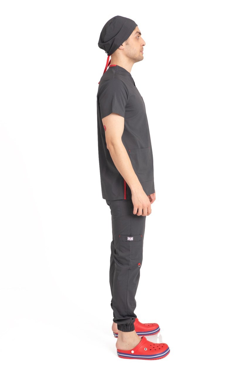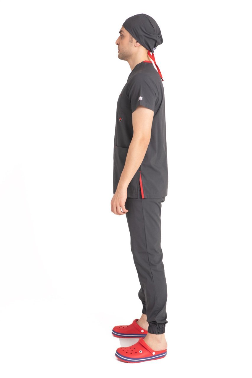 Dr Jogger Scrubs Likralı Koton Kumaş Erkek Füme