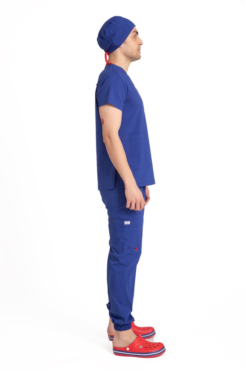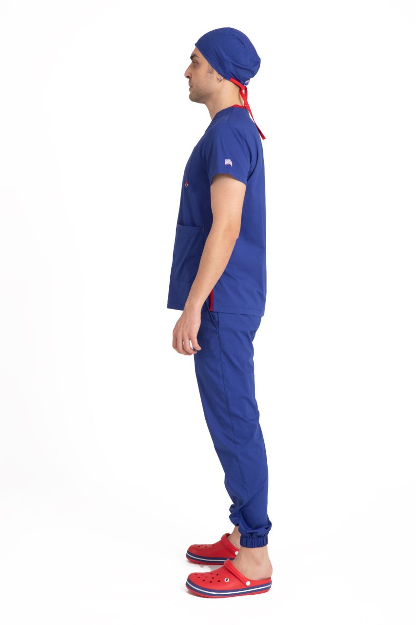Dr. Jogger Scrubs, modern tasarımı ve yüksek konfor sağlayan yapısıyla öne çıkan bir erkek sağlık çalışanı kıyafetidir. Paçaları lastikli olarak üretilmiştir ve ince, hafif, likralı koton kumaş ile maksimum esneklik ve hareket özgürlüğü sunar. Pantolon tamamen lastiklidir ve diz hizasında kullanışlı bir cep bulundurmaktadır, bu da pratiklik sağlar.