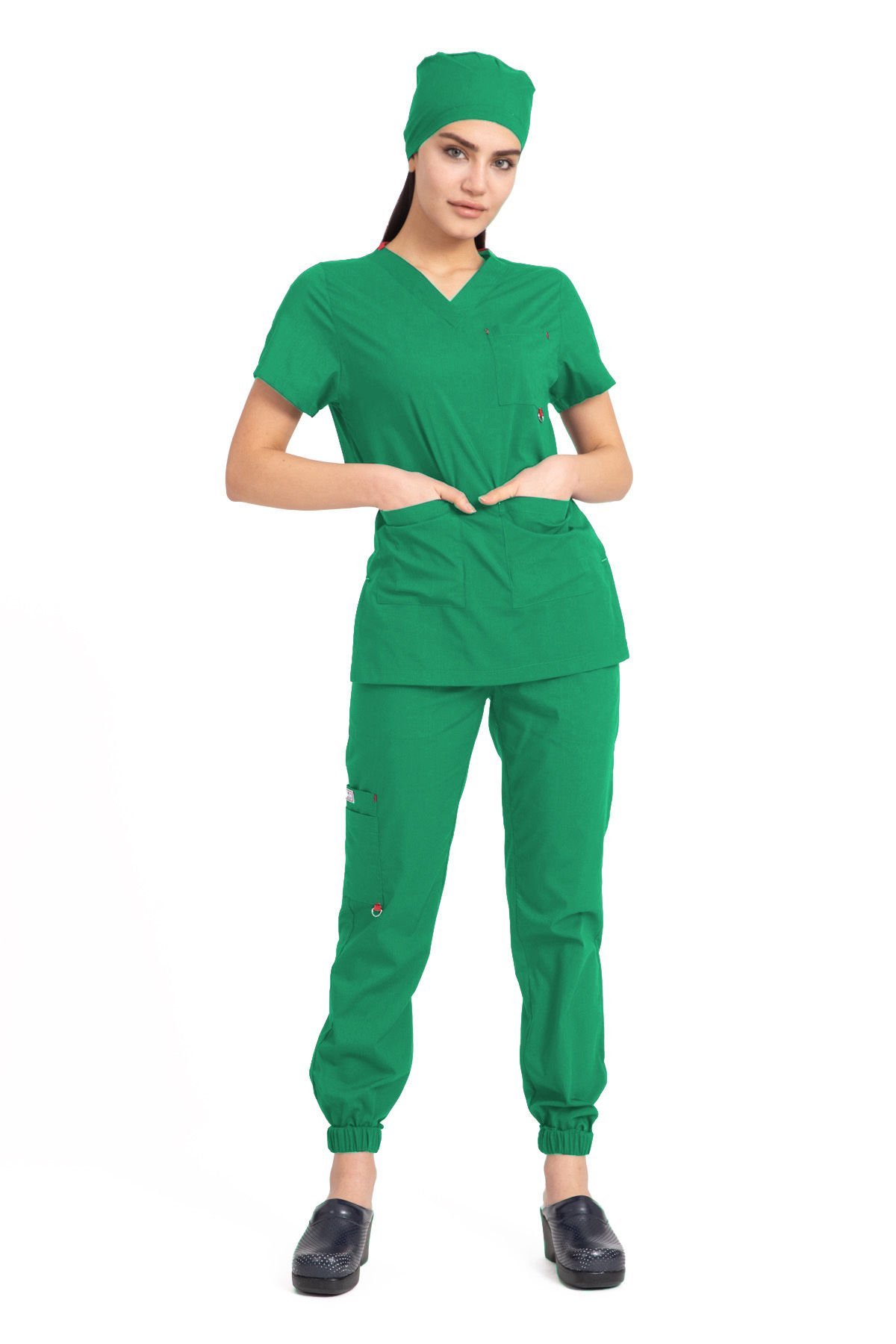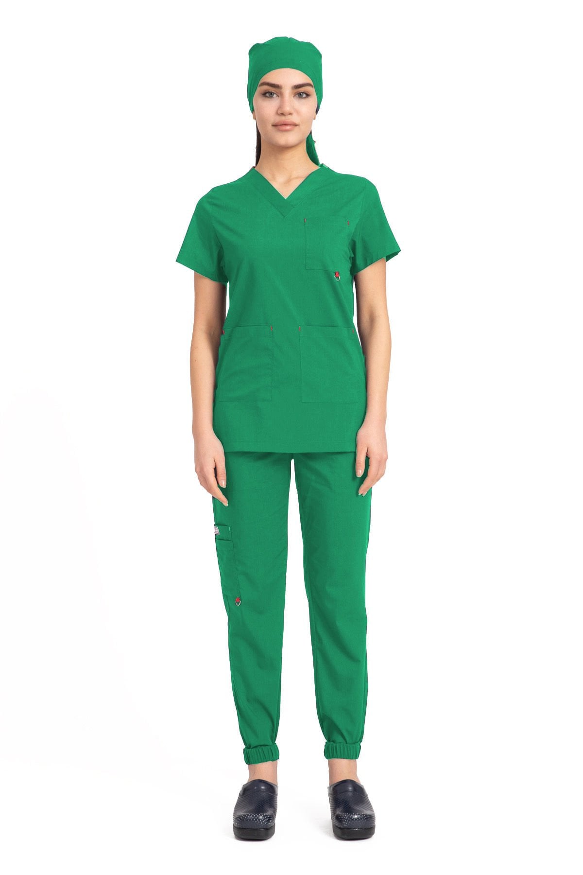 Bu eşsiz ürün, hemşirelerden doktorlara, tıbbi personelden sağlık uzmanlarına kadar her türlü sağlık profesyoneli için mükemmel bir seçimdir. Dr. Jogger Scrubs Likralı Koton Kumaş Kadın Çimen Yeşili ile profesyonel ve modern bir görünümün tadını çıkarırken aynı zamanda konforunuzdan ödün vermezsiniz.