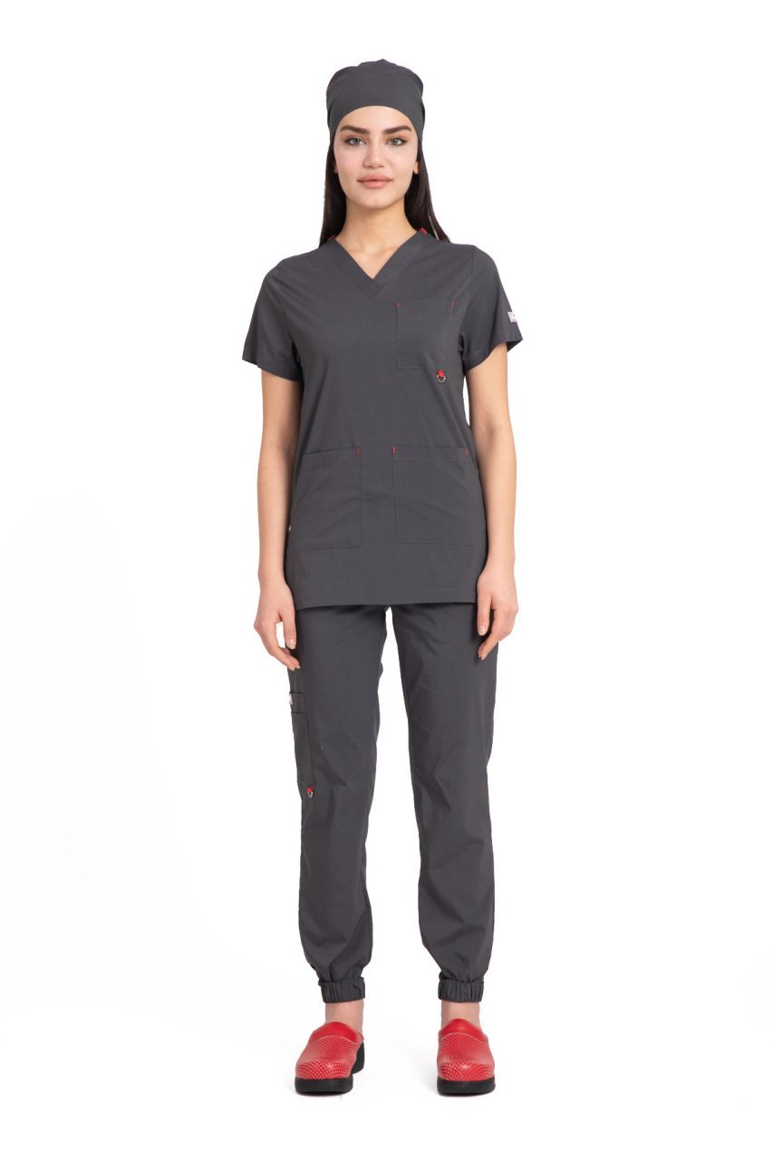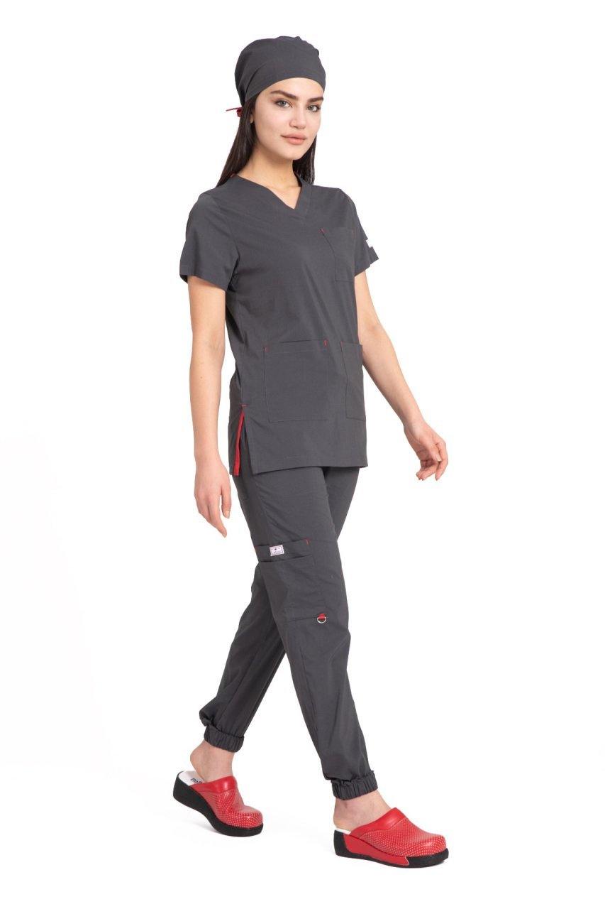 Dr Jogger Scrubs Likralı Koton Kumaş Kadın Füme