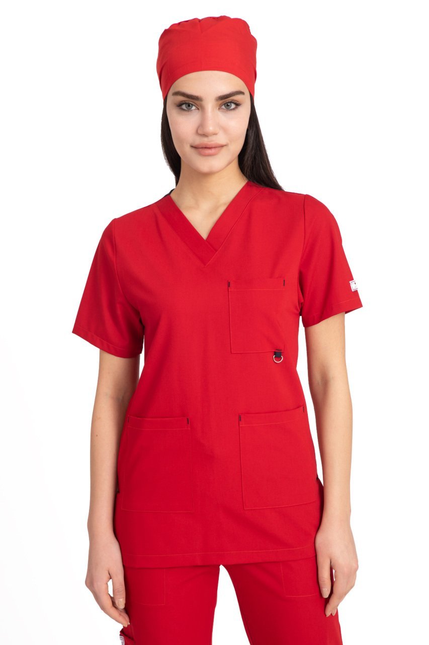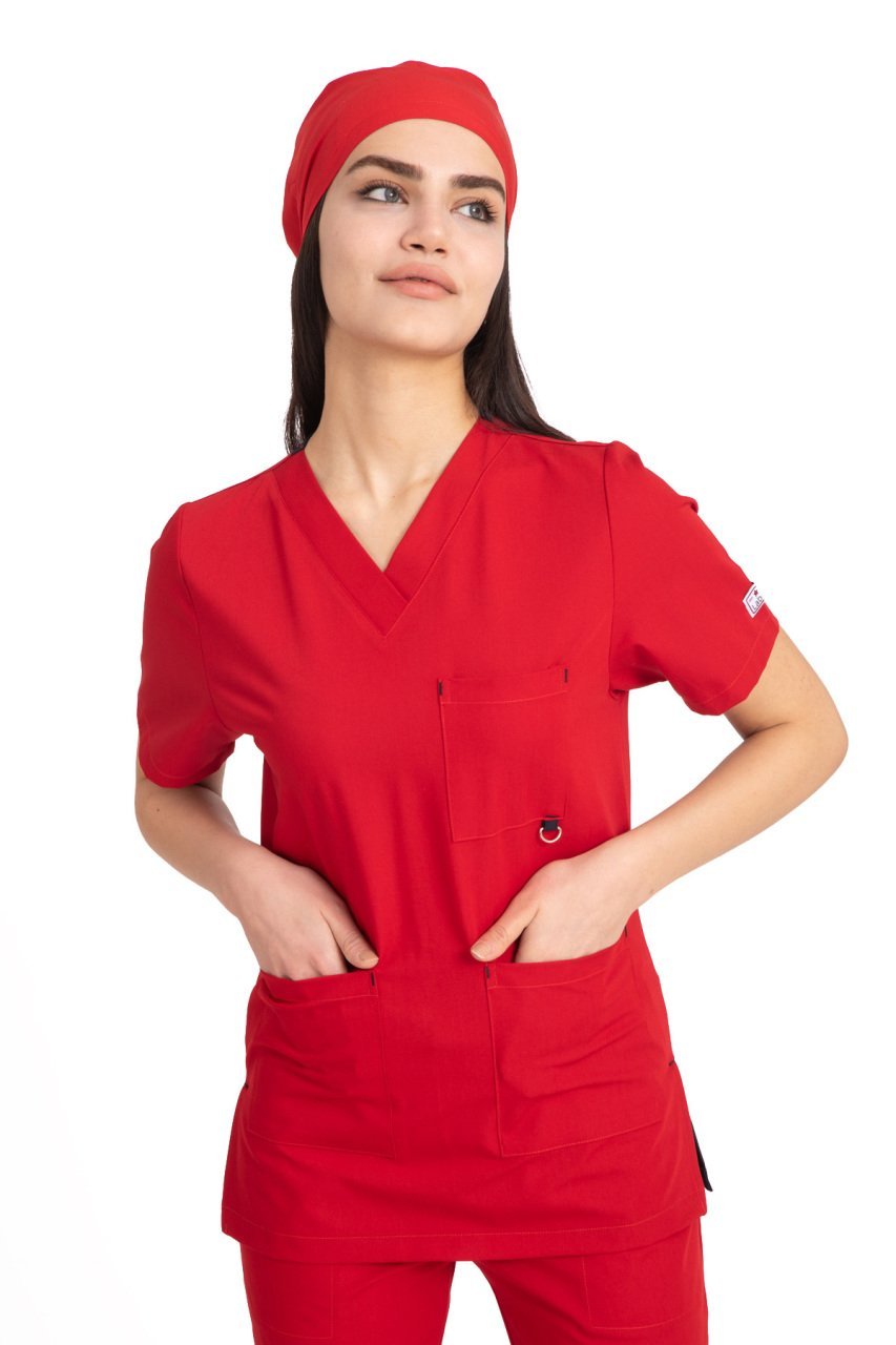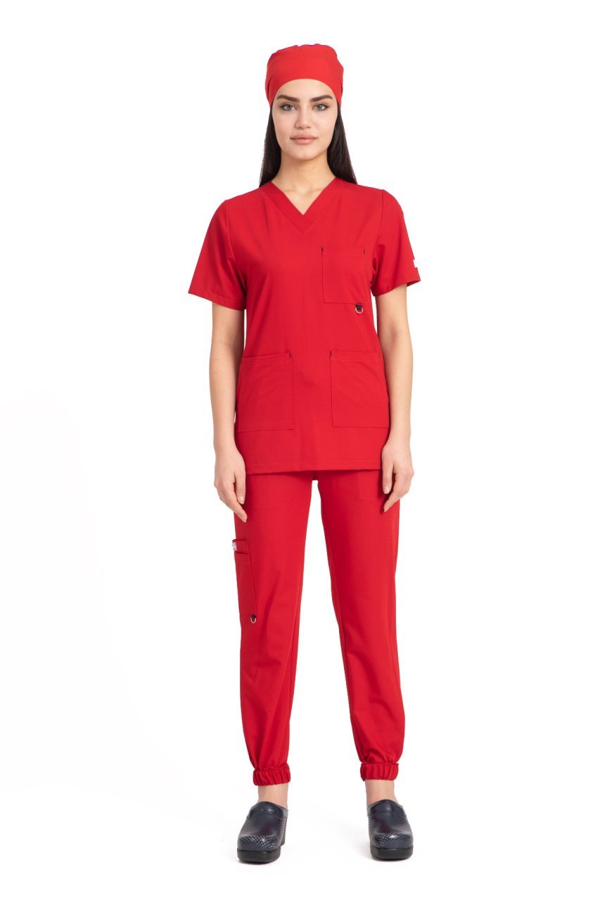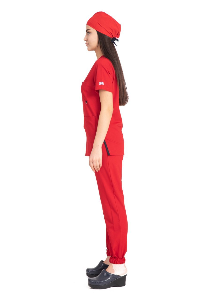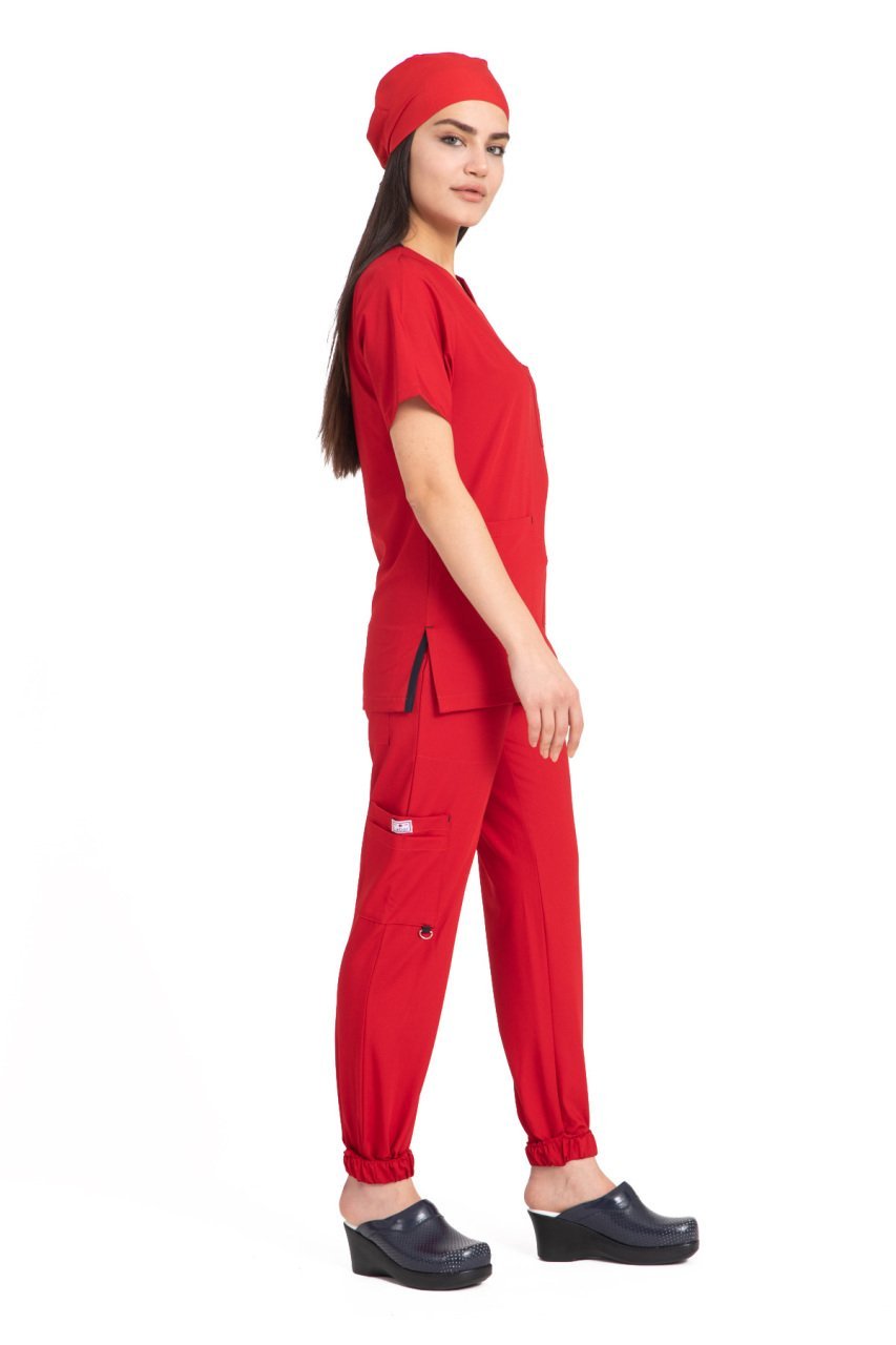 Dr Jogger Scrubs Likralı Koton Kumaş Kadın Kırmızı