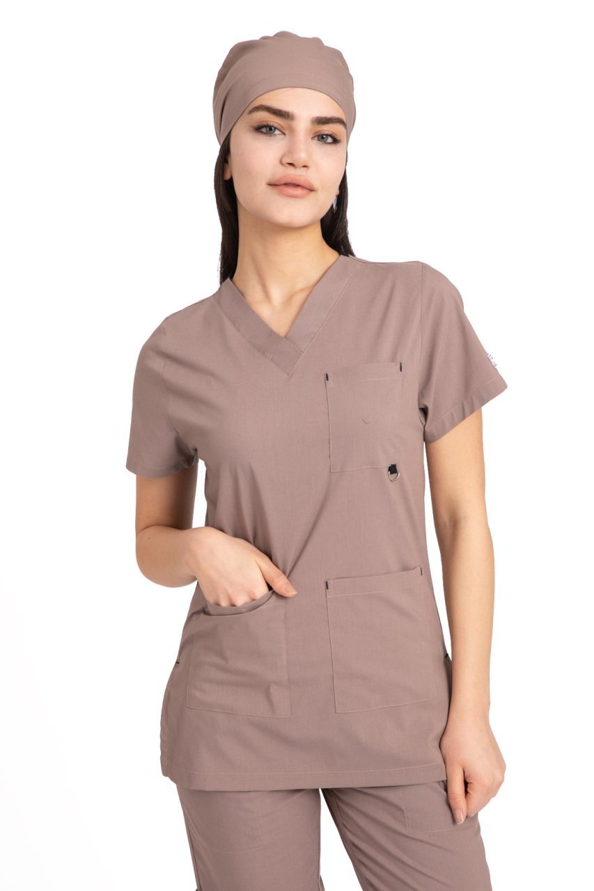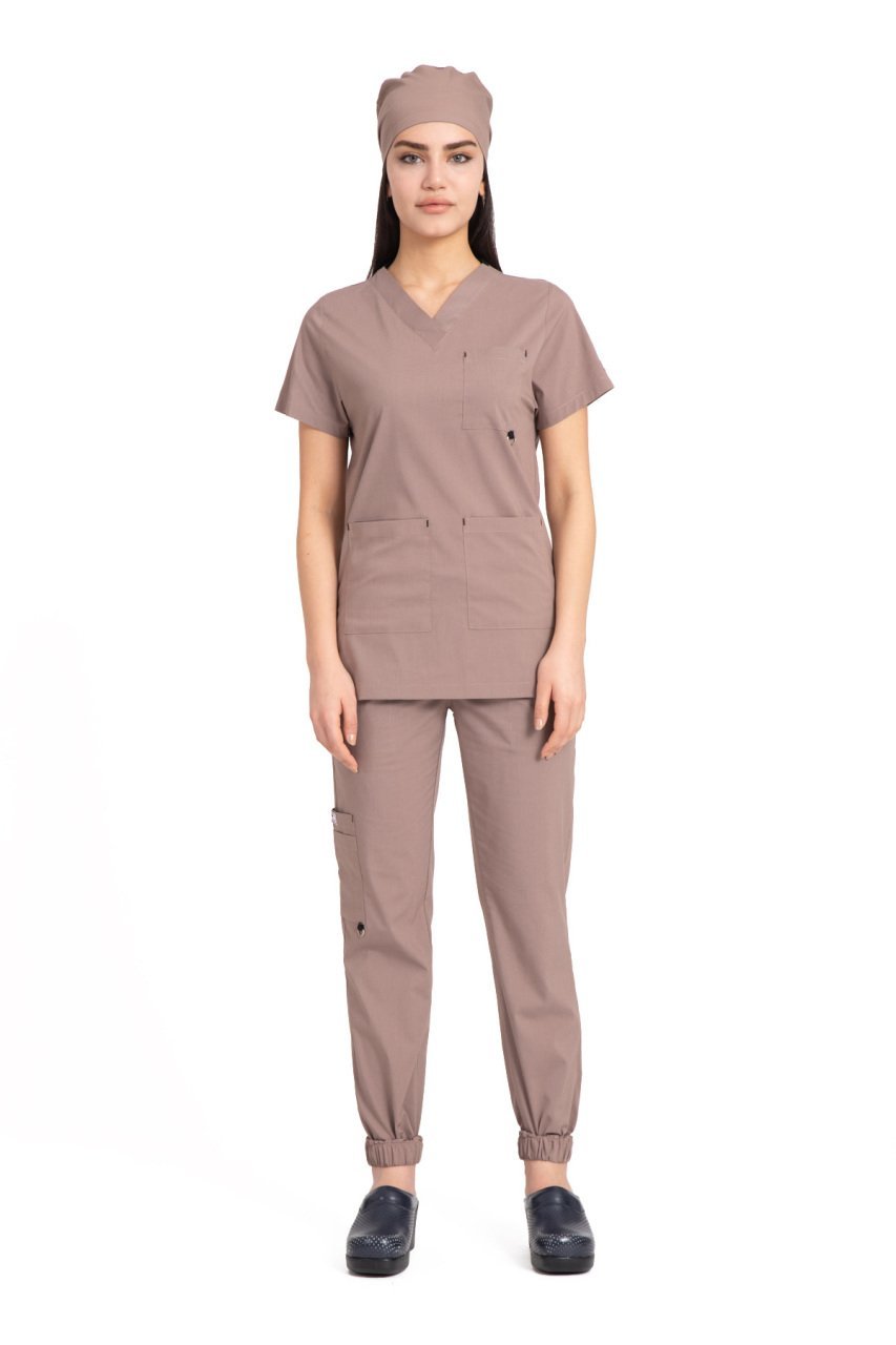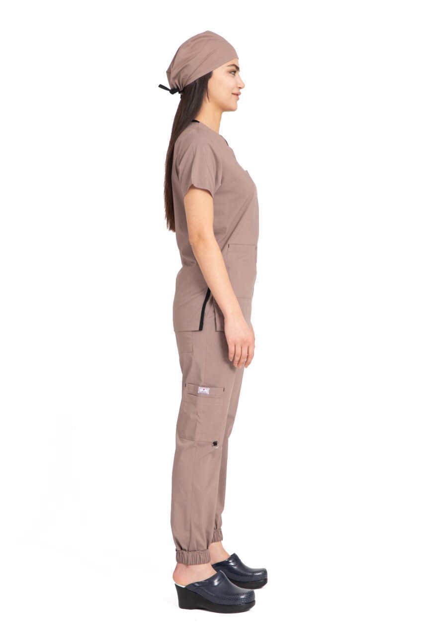 Dr Jogger Scrubs Likralı Koton Kumaş Kadın Toprak