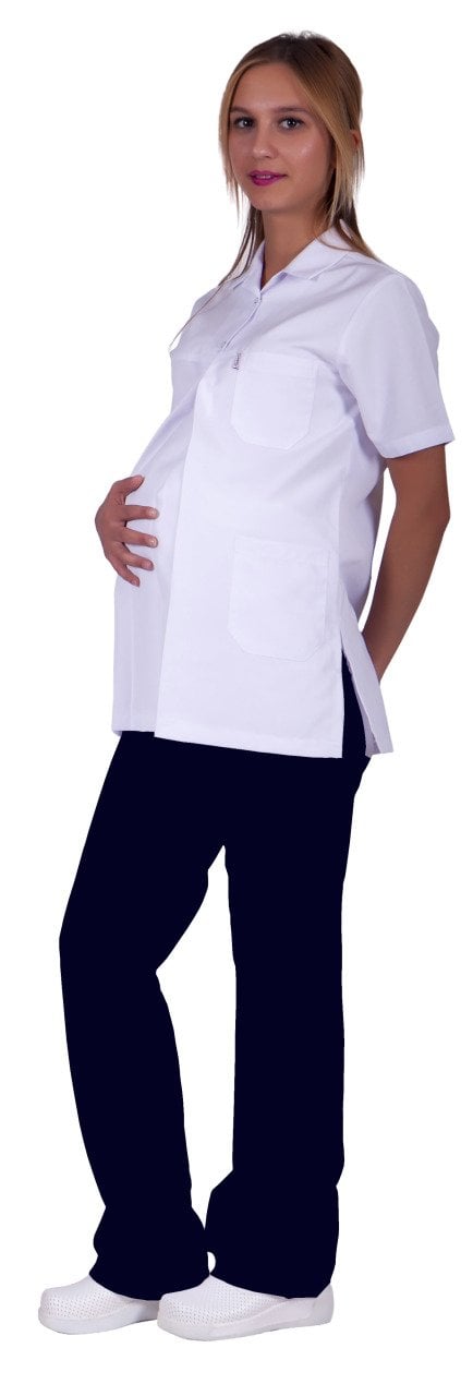 Hamile Hemşire Forması Üst Beyaz Alt Pantolon Lacivert