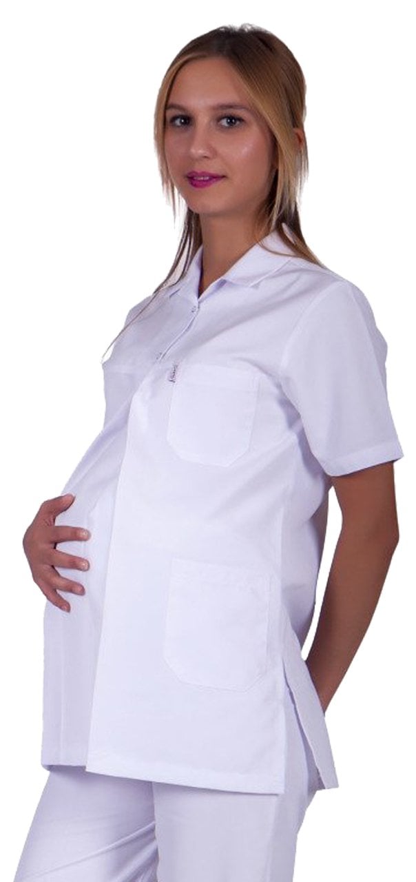Hamile Hemşire Forması Tek Üst Beyaz Alpaka Kumaş Lakos Yaka HML-01