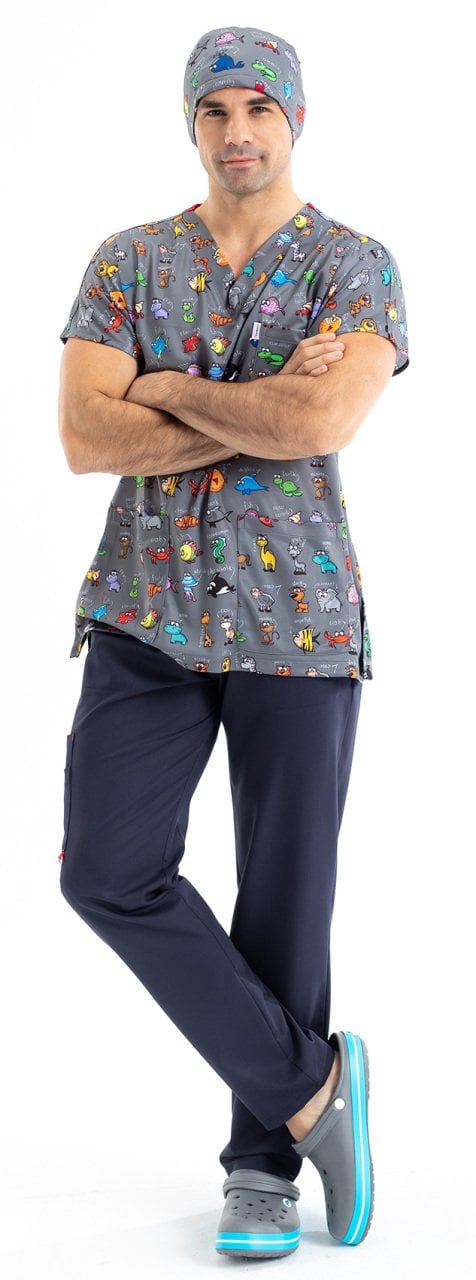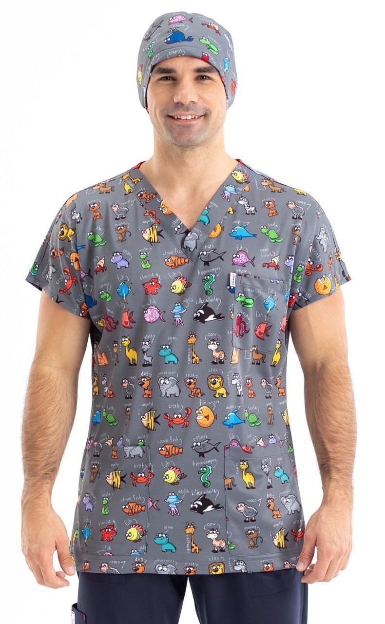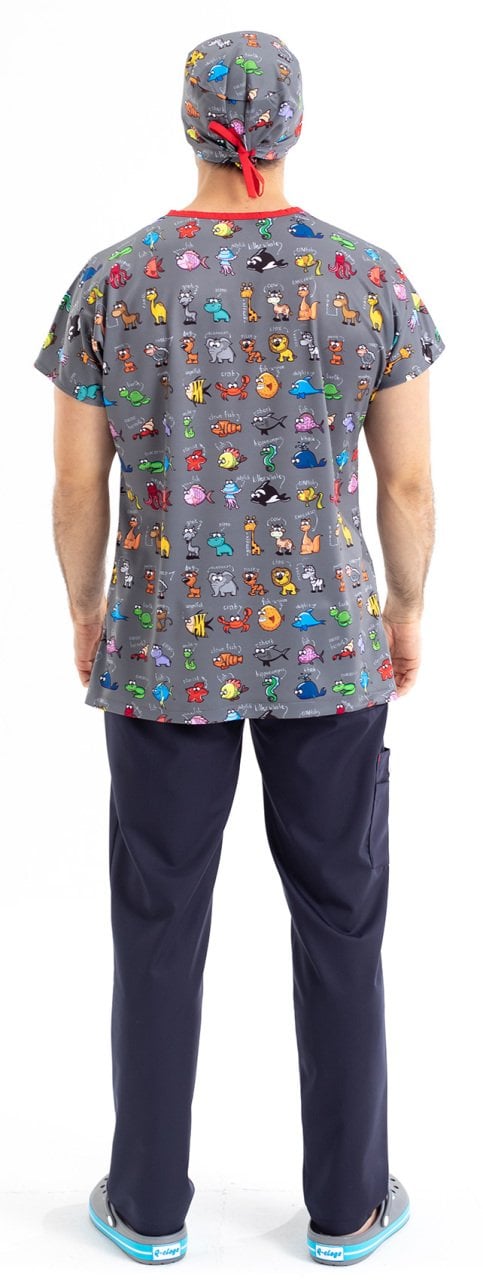 Hayvanlar Alemi Desenli Erkek Cerrahi Forma Üst