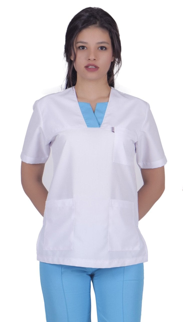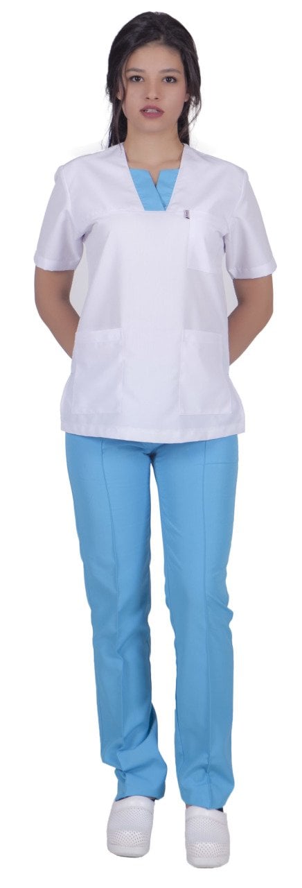 Hemşire Forması RN-01 Beyaz Üst Turkuaz Mavi Alt