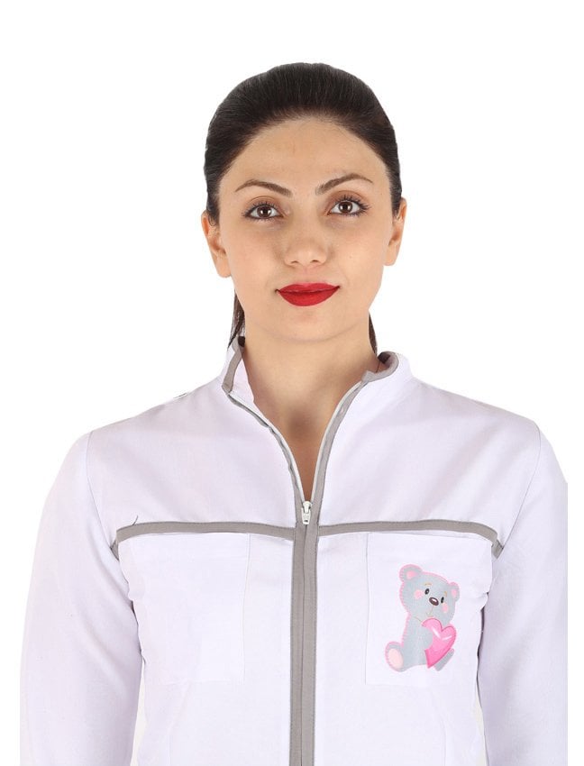 Bu modelimizle çalışırken hem sizin hem çocukların çekinmeden korkmadan size yaklaşmaları sağlamak için tasarlanmıştır. Boydan fermuarlı, kapri koldur. İstediğin taktirde özel üretimle uzun kol ya da kısa kol olarak üretilebilir. Modelin değişik renklerinden diktirmek isterseniz 0850 303 73 06 telefonlarımızdan bilgi alabilirsiniz.