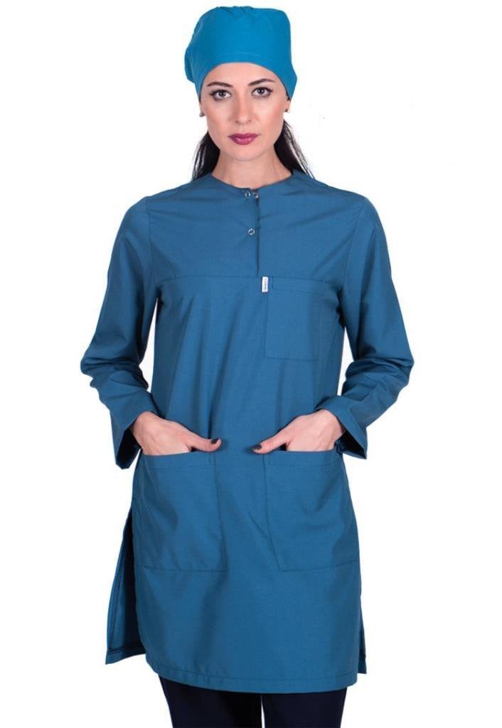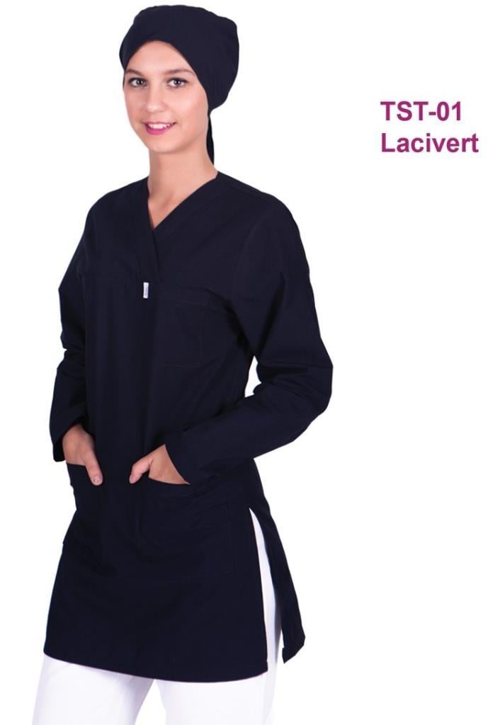 Tesettür Hemşire Forması Tek Üst Sıfır Çıtçıtlı Yaka