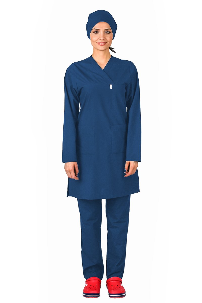Hemşire Tesettür Terikoton Takım Tst-01 34-XXS - İndigo(Petrol Mavi)