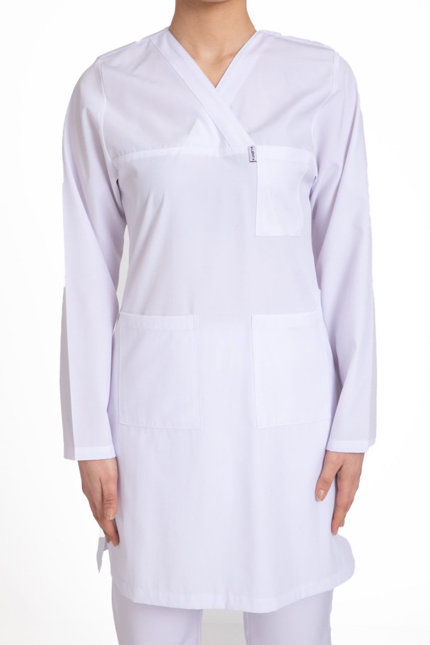 Üst forma boyu 90 cm dir. Alt sağ ve sol tarafında bulunan yırtmaçlar sayesinde yürürken ve çalışırken size konforu sunar. Kumaşı doğal ve yumuşaktır.