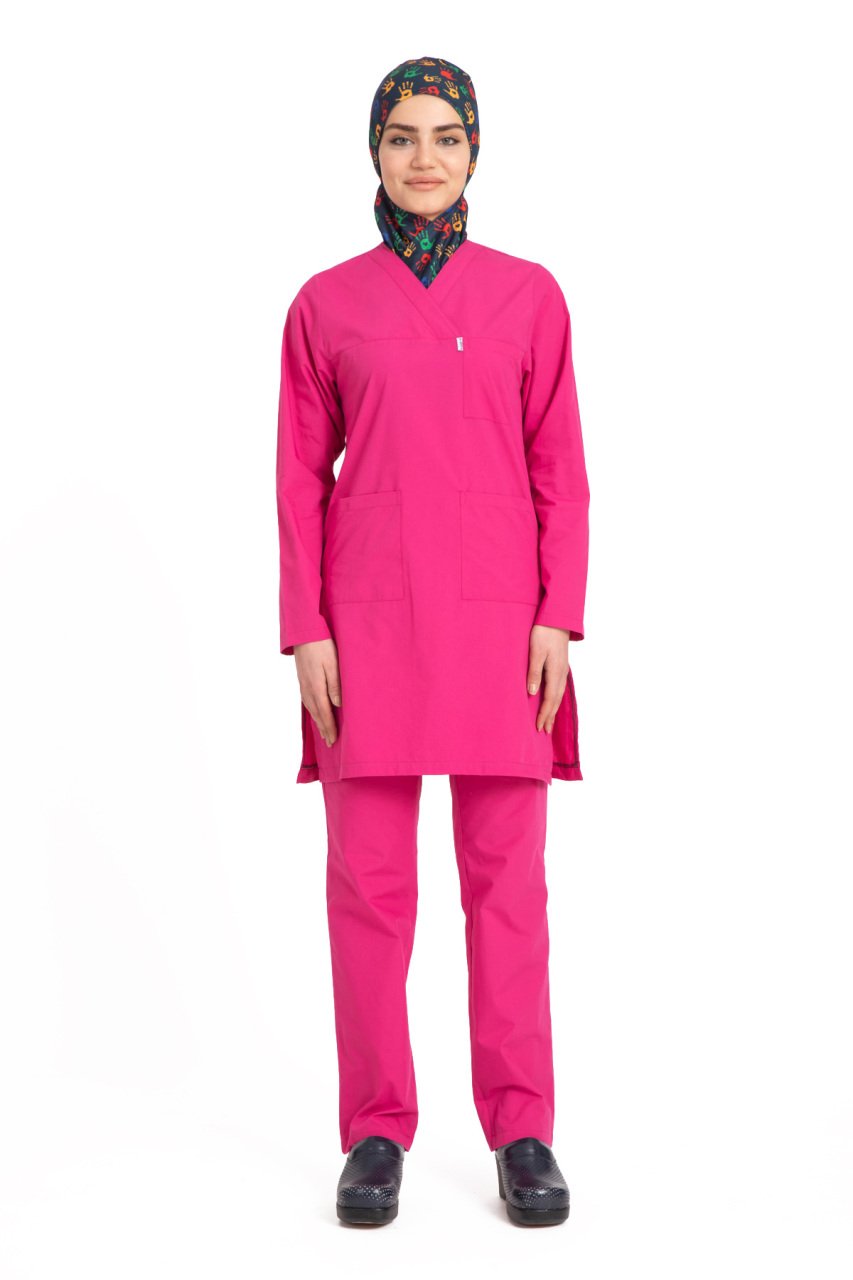 Hemşire Tesettür Terikoton Takım Tst-01 46-2XL - Fuşya