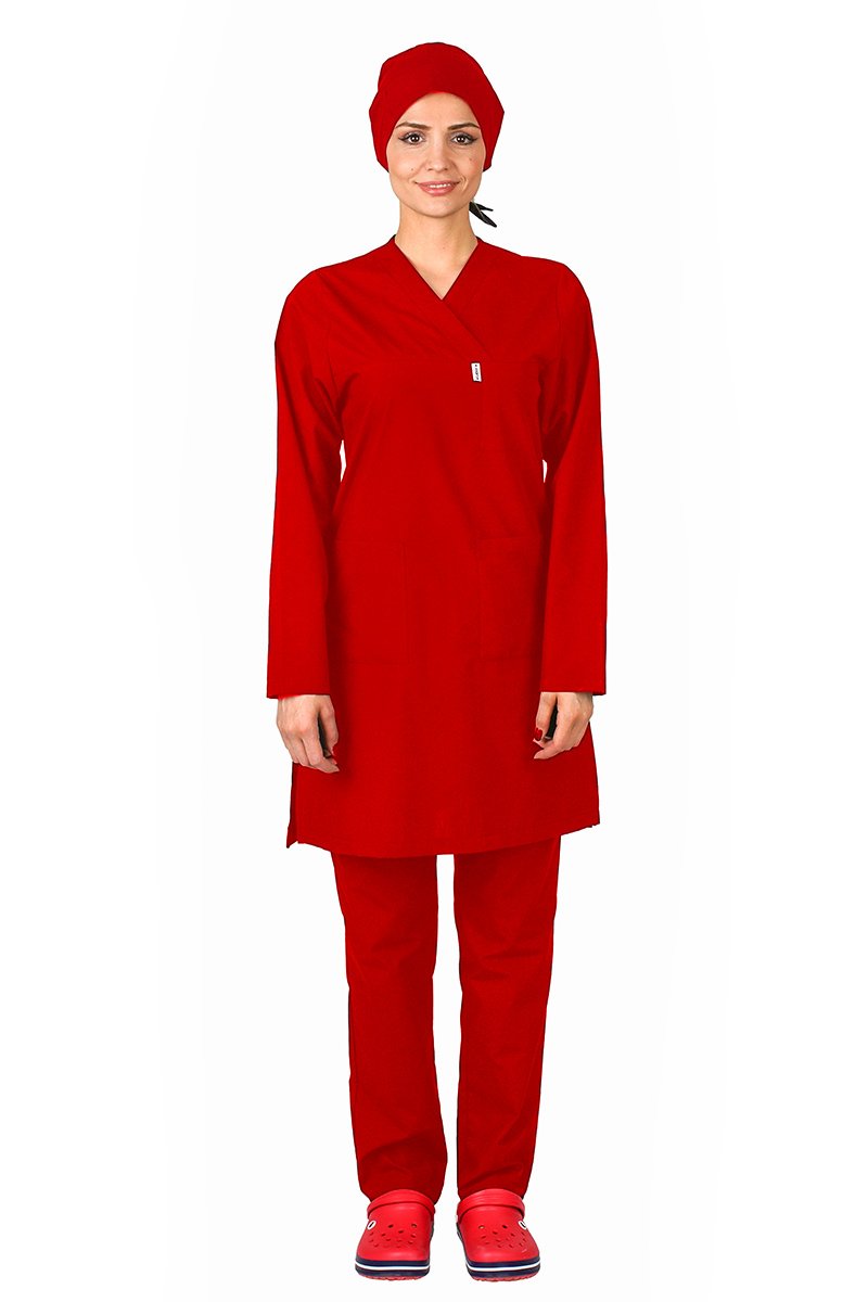 Hemşire Tesettür Terikoton Takım Tst-01 48-3XL Özel Sipariş - Kırmızı